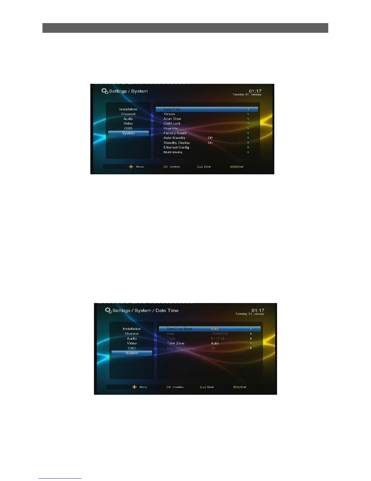 Press[▲/▼] key to highlight the system main menu, press [ok] or [ ►] to enter sub-menu.