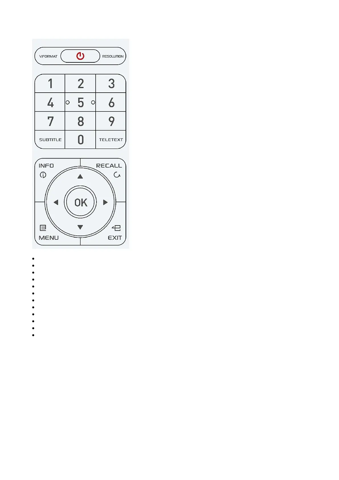 RECALL: To move to the previous channel Used for special functions in menu mode