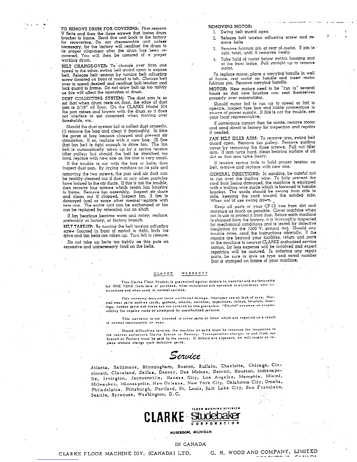 Clarke 504 - Drum Sander Operation and Maintenance; Drum Re-covering and Belt Adjustments; Dust Collection and Motor Servicing; General Operation and Storage