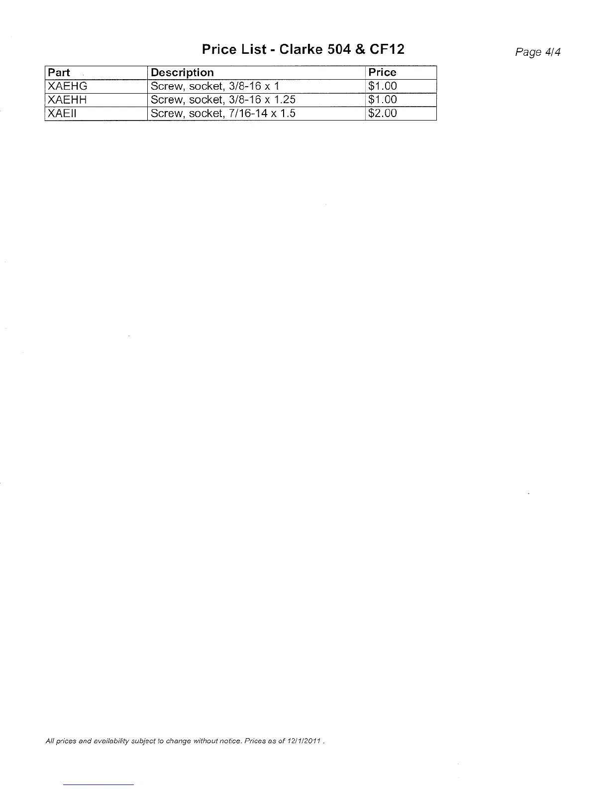 Clarke 504 - Component Pricing (CS58-XAEII)