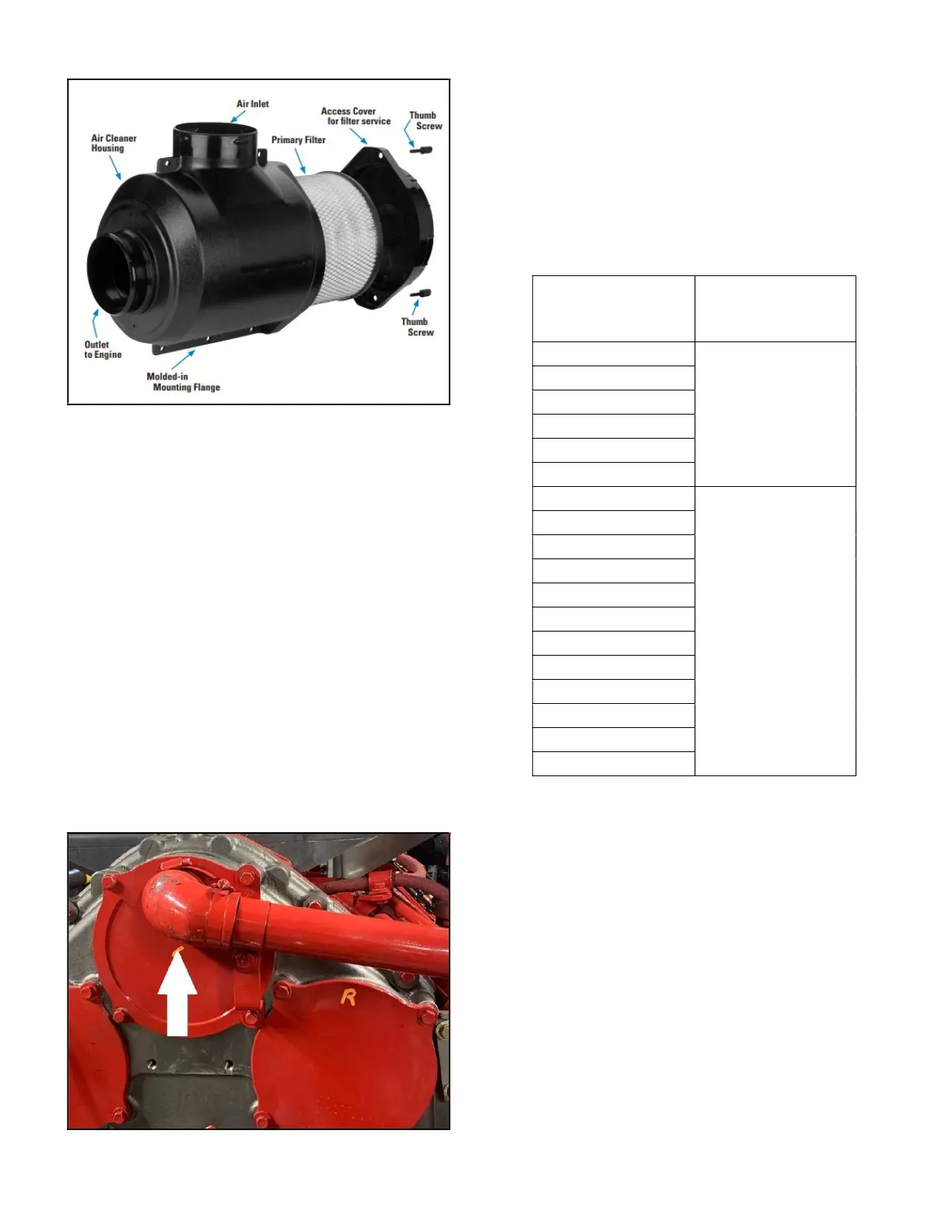 the table below for maximum exhaust restrictions.