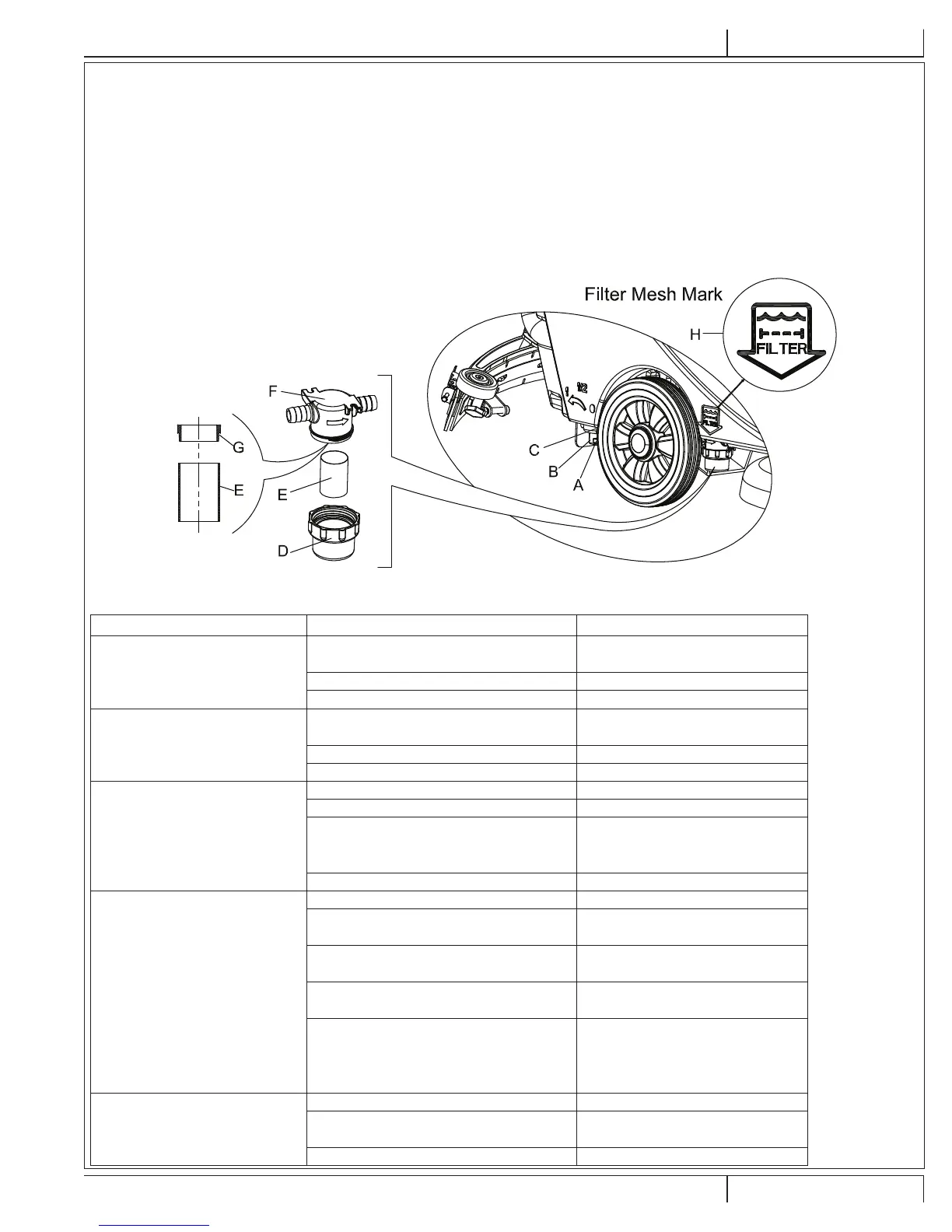 Le fi ltre (E) doit être bien positionné à l’endroit précis prévu à cet effet du boîtier (G).