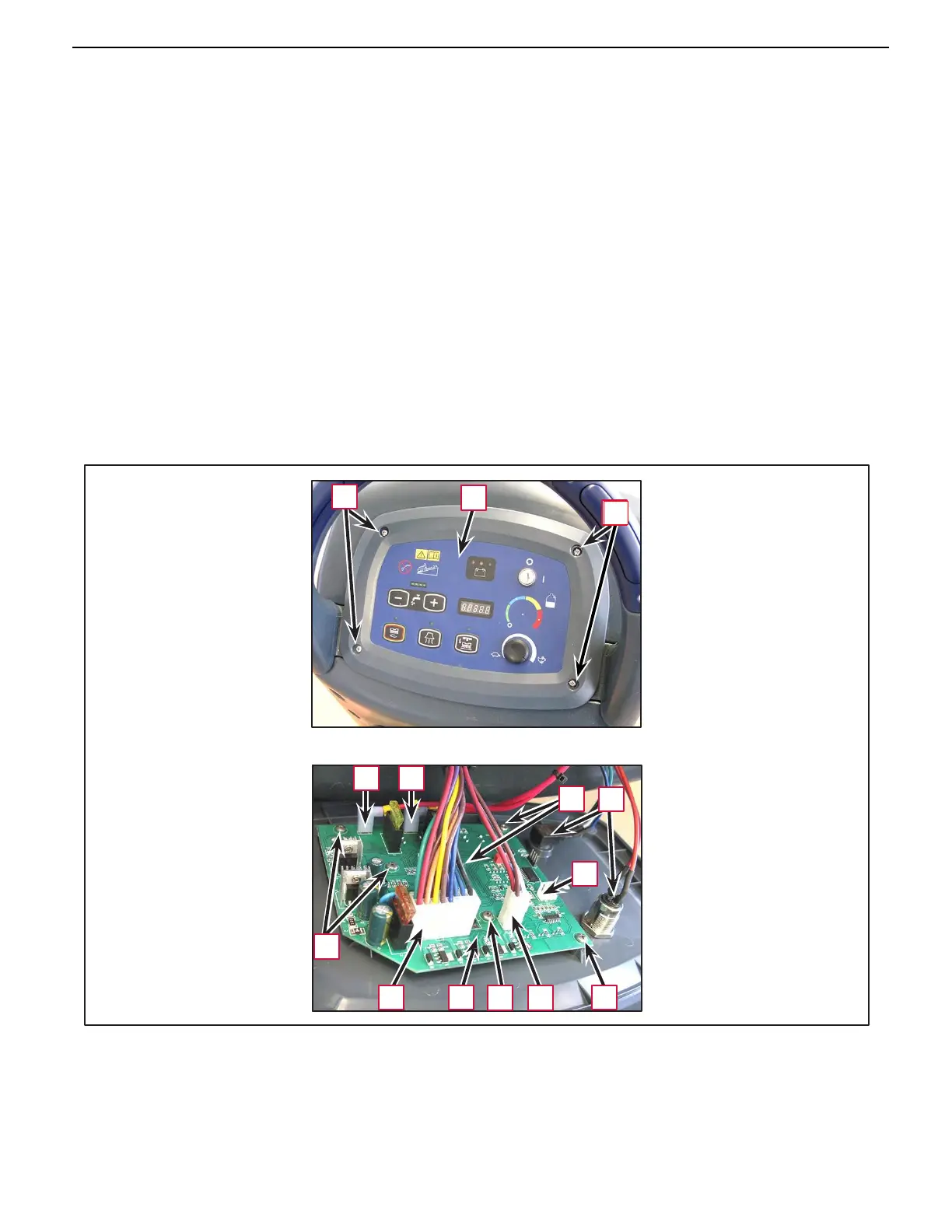 Unscrew the screws (E), then remove the control electronic board (D) from the control panel.