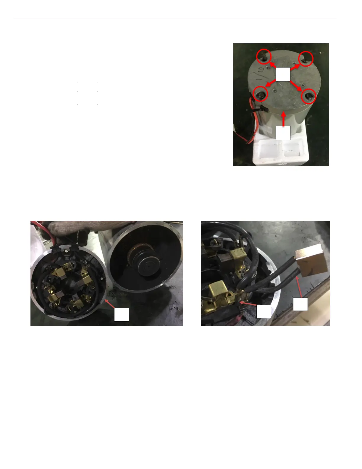 Remove the screws (D) and replace the carbon brushes(C).