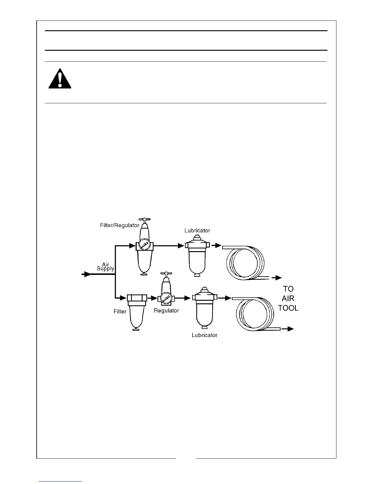 • A typical air line layout is shown above. If an automatic in-line filter/