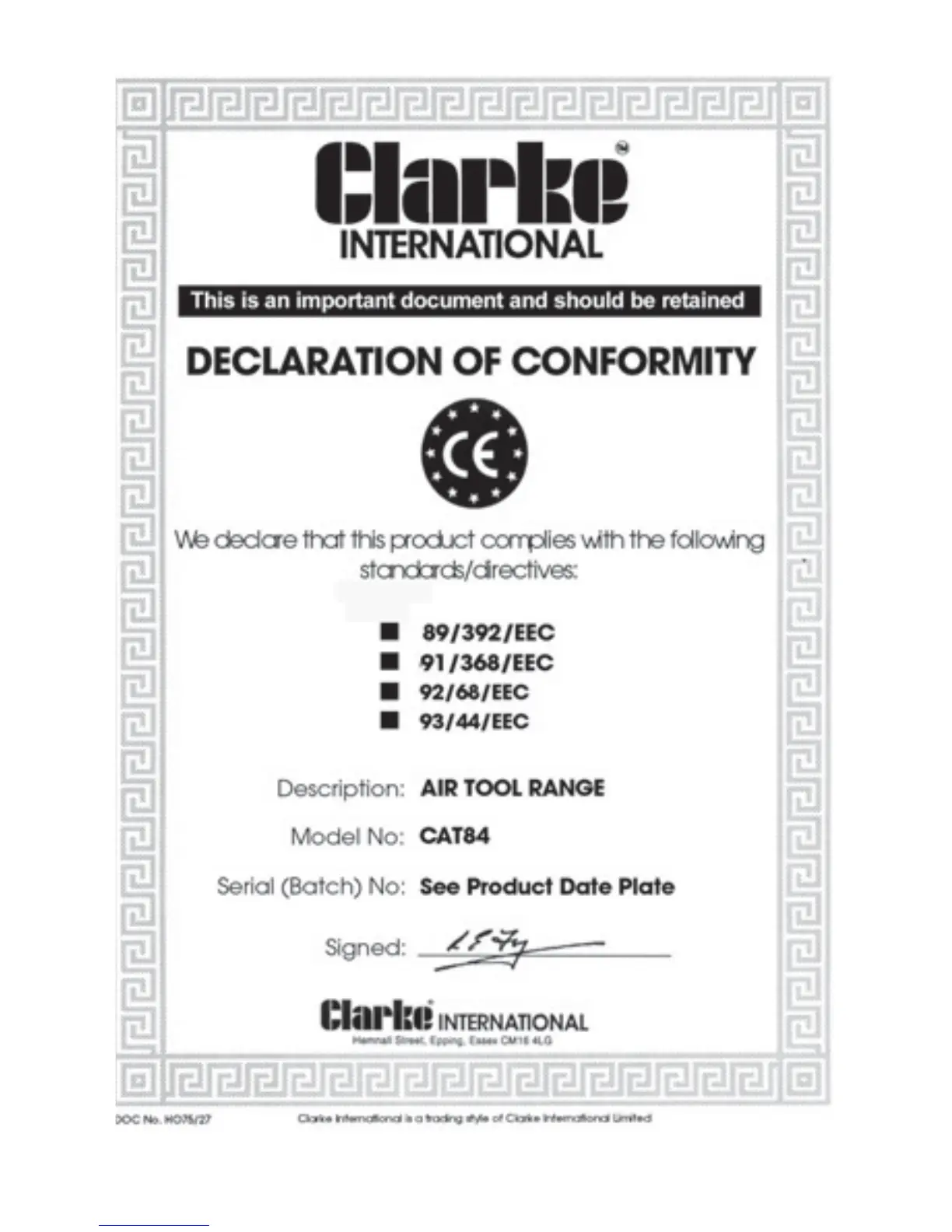 Clarke CAT84