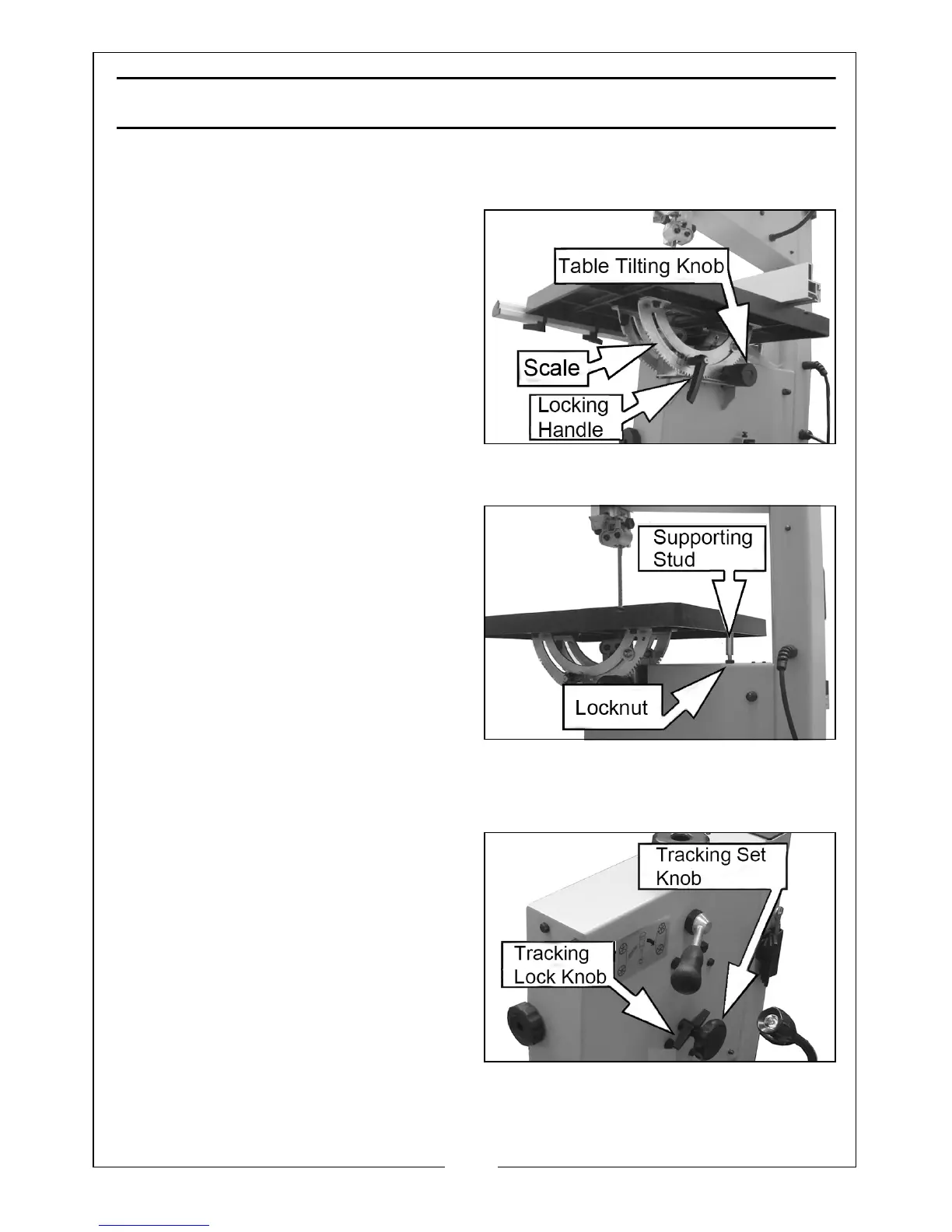 needs to be corrected by adjusting the tilt of the upper bandsaw wheel.