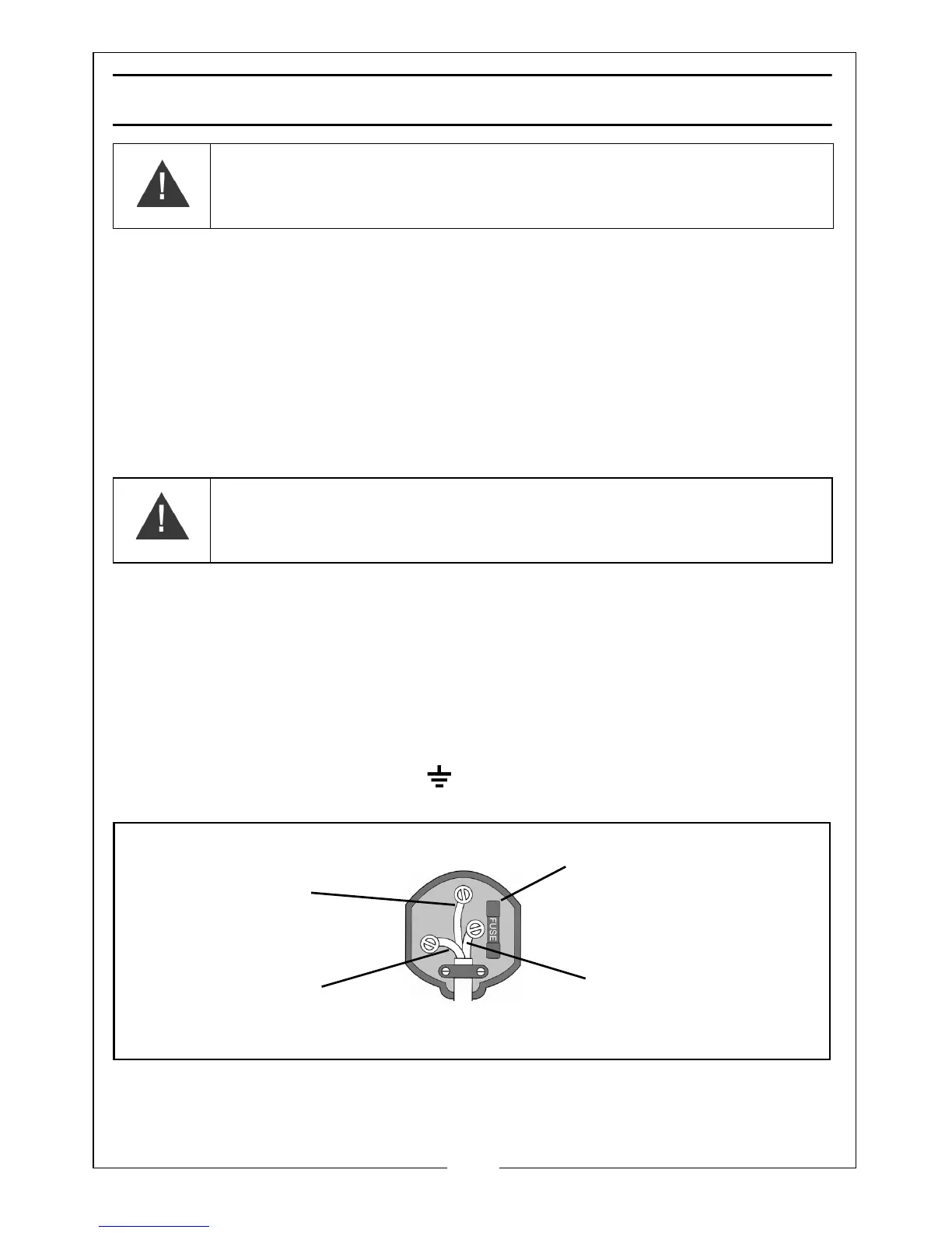 fuse in the plug, the fuse cover must be refitted. If the fuse cover becomes lost or