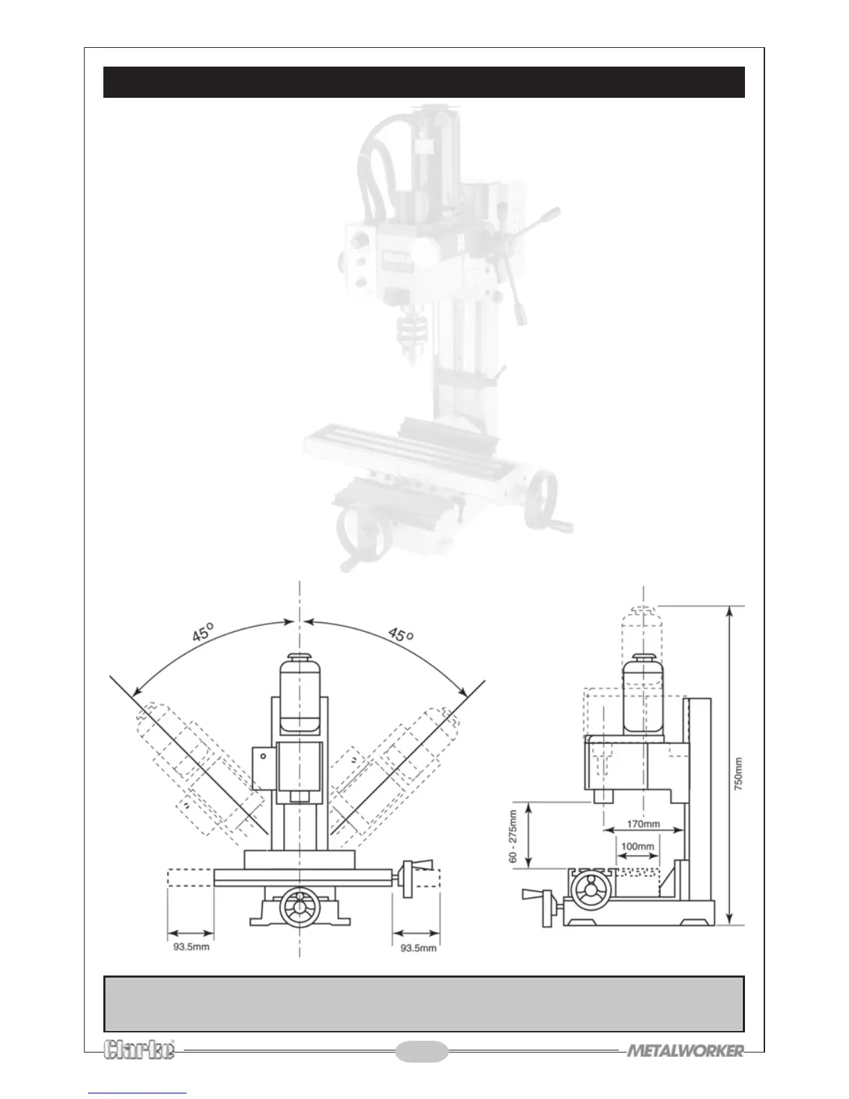 Mill/Drill Head Angle ..................................................................... -45º to 45º