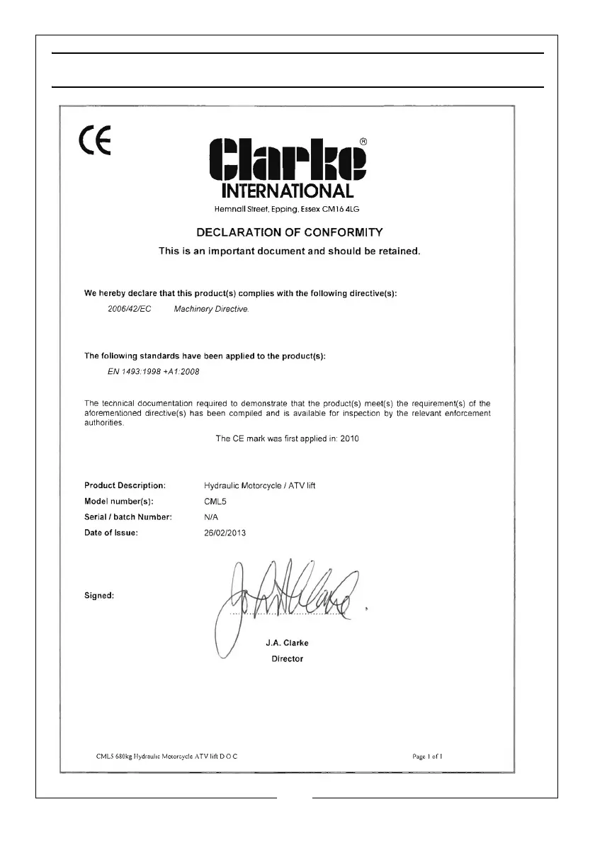 Clarke CML5 - Declaration of Conformity