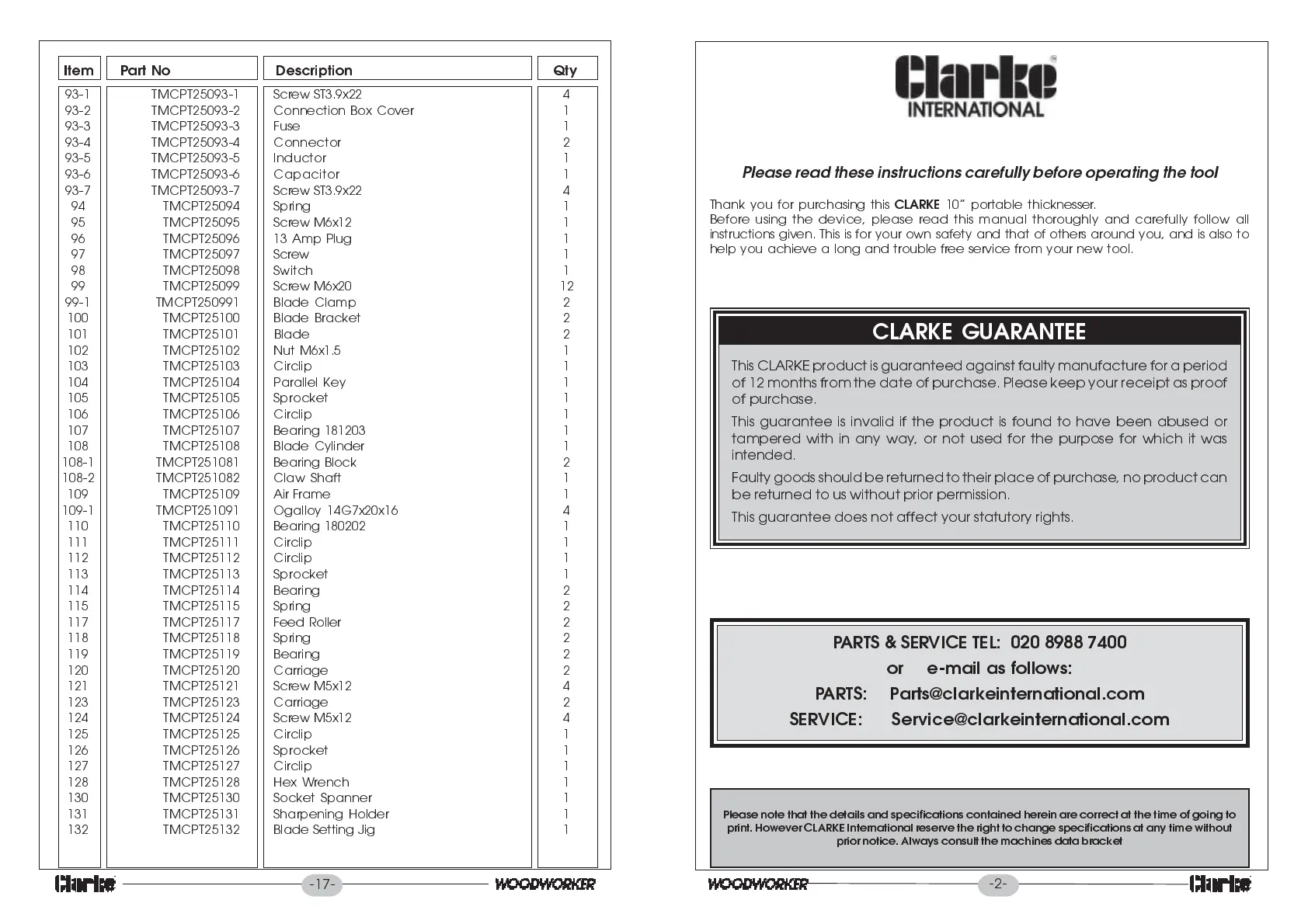 This CLARKE product is guaranteed against faulty manufacture for a period