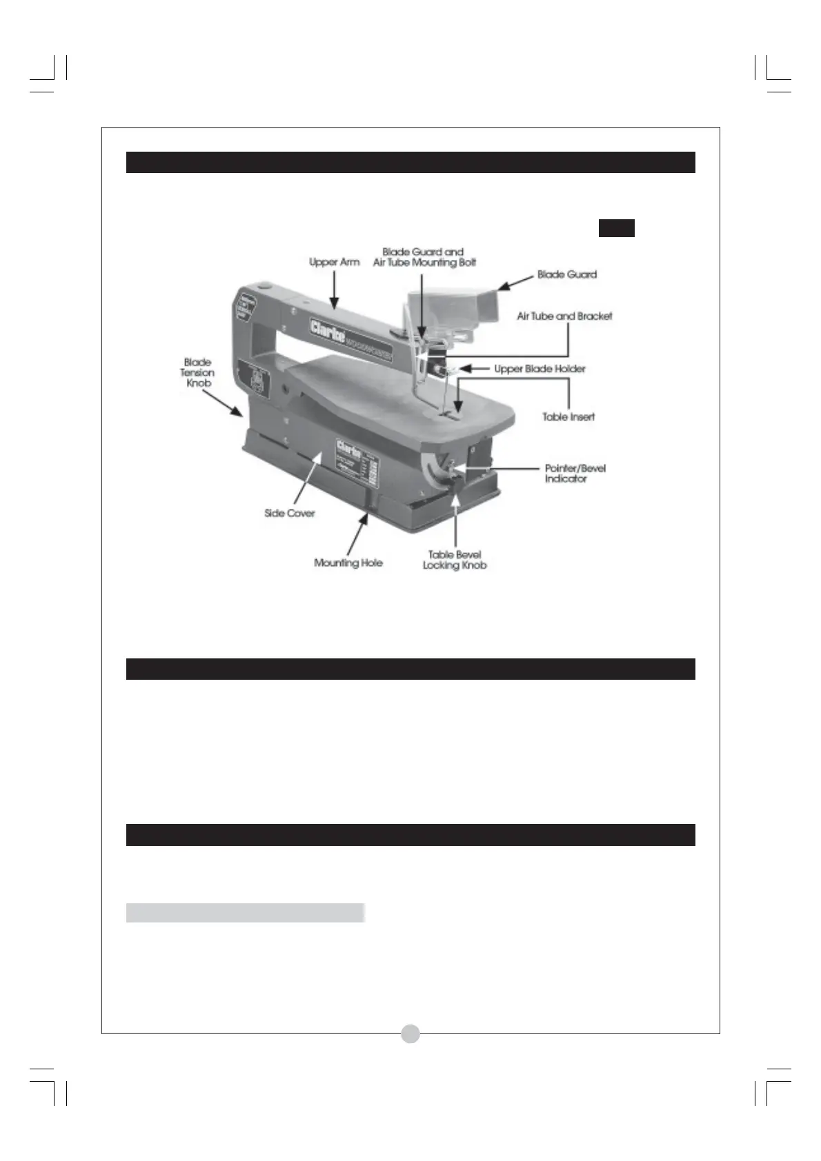 Your Scroll Saw is fully assembled, except for the Blade Guard, and the Air tube. To attach these