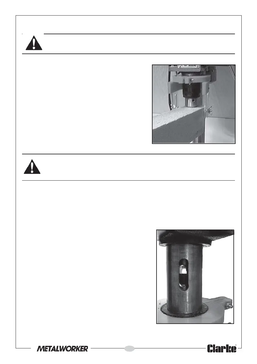 WARNING: DISCONNECT THE DRILL PRESS FROM THE POWER SOURCE