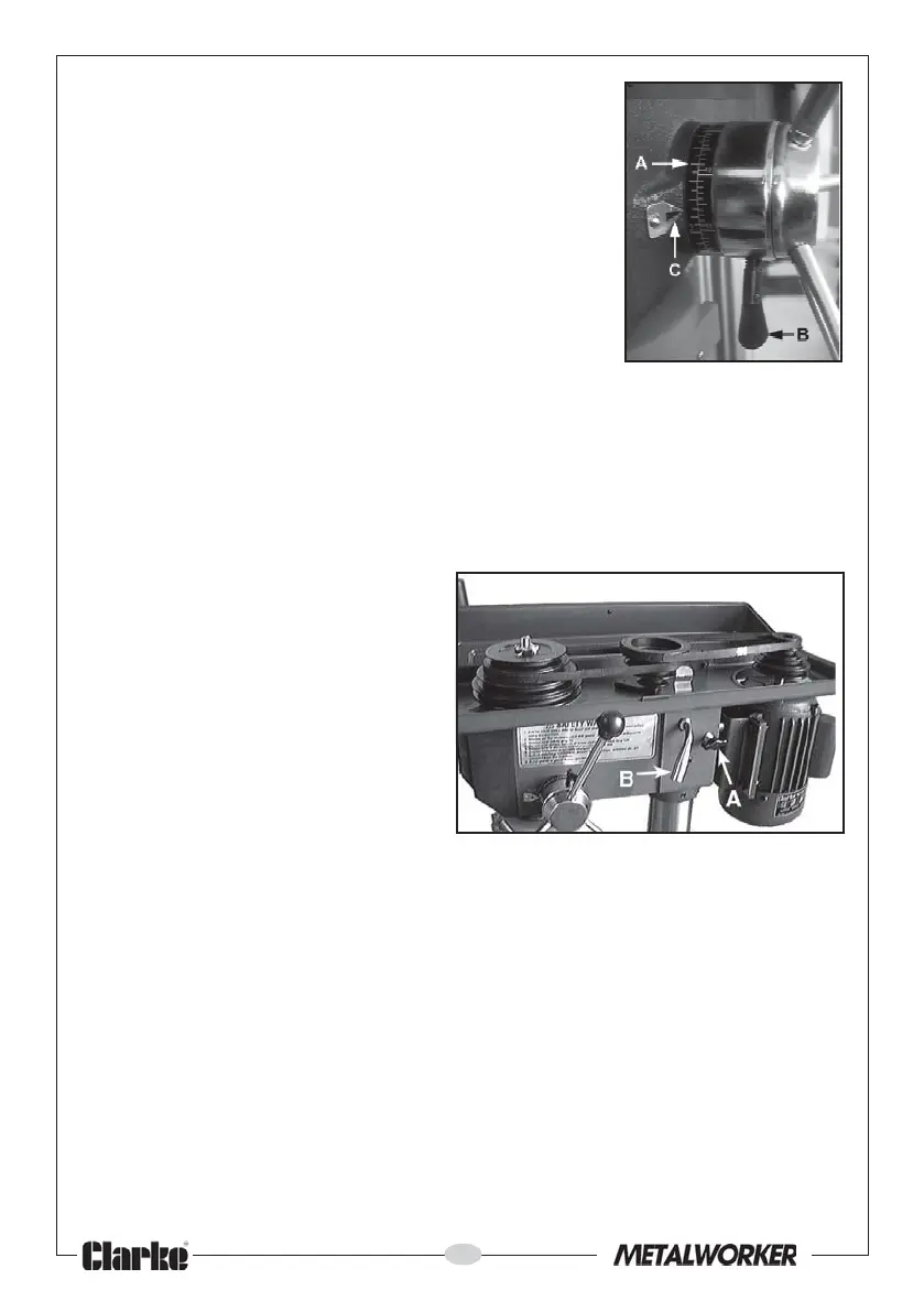 NOTE: If the belt should slip whilst drilling, adjust the belt tension.
