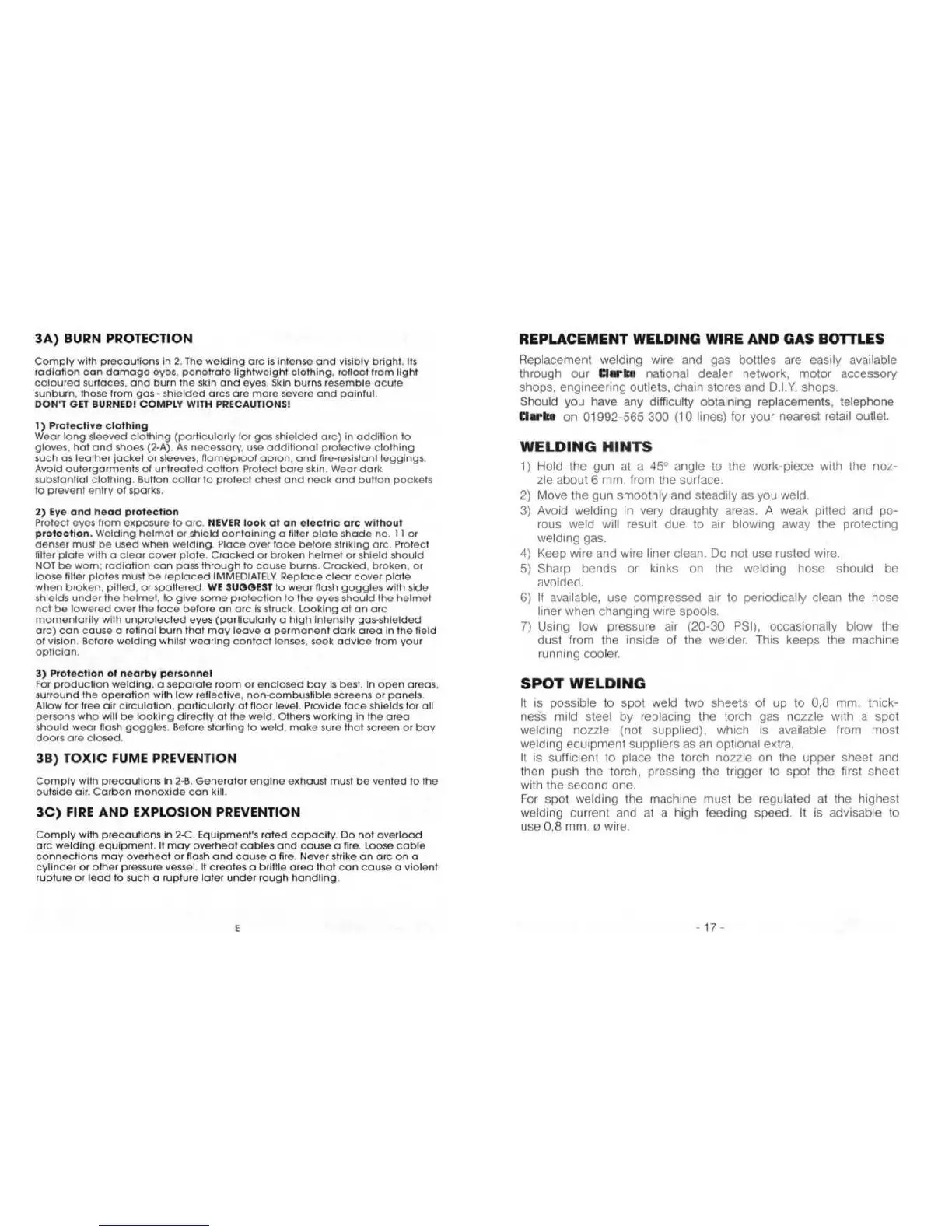 Clarke MIG 100E MK2 - Burn Protection; Toxic Fume Prevention; Replacement Welding Wire and Gas Bottles