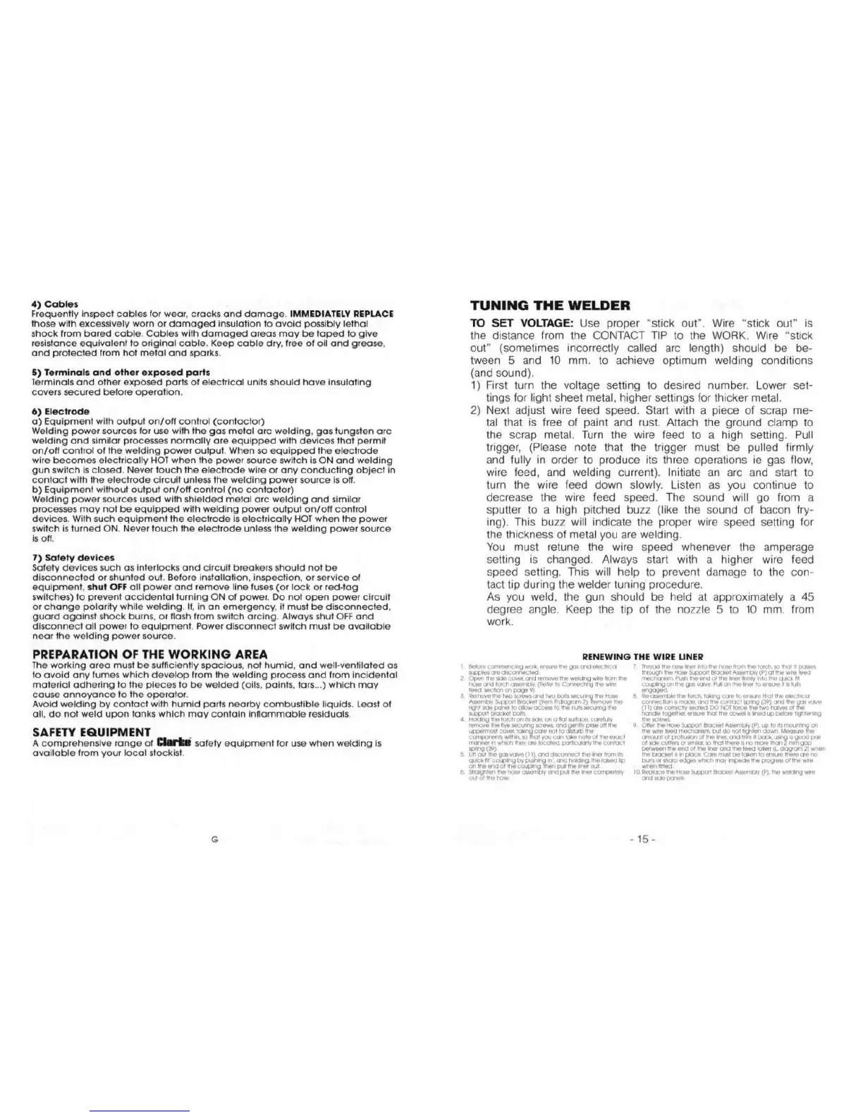 Clarke MIG 100E MK2 - Preparation of the Working Area; Tuning the Welder; Renewing the Wire Liner