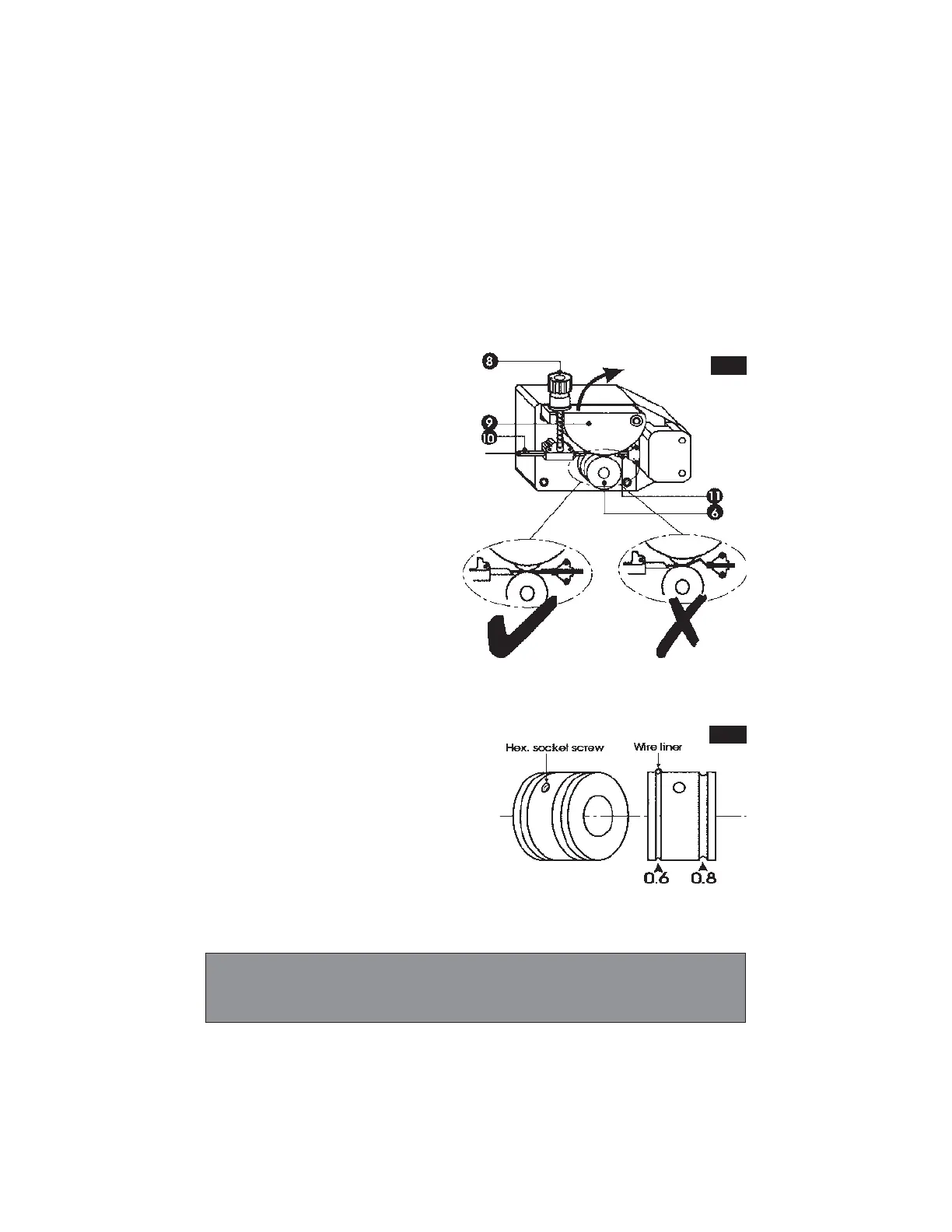 feed motor, too loose will not allow the wire to be pulled by the roller.