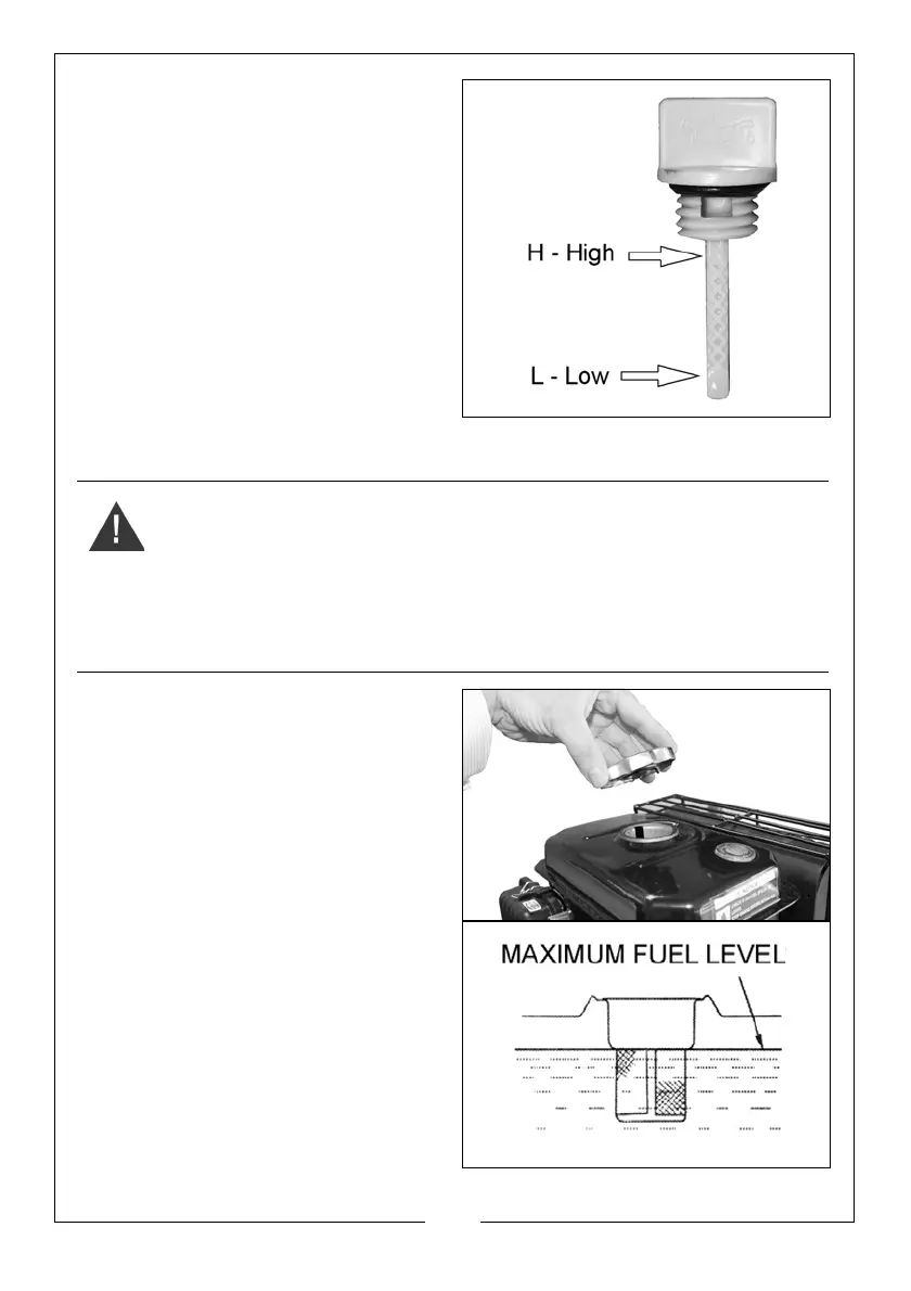 • Do not overfill the oil reservoir.