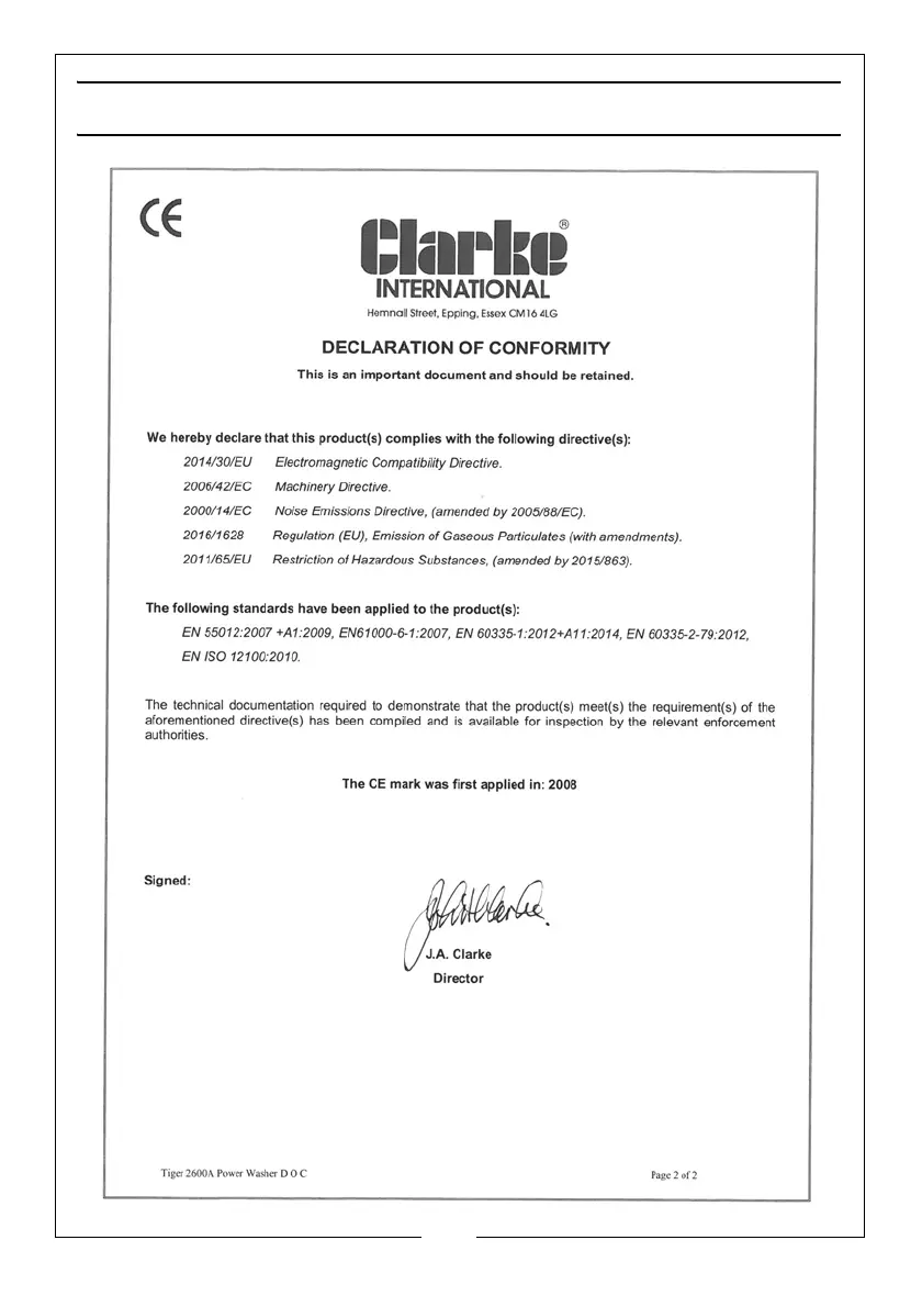 Parts & Service: 020 8988 7400 / E-mail: Parts@clarkeinternational.com or Service@clarkeinternational.com