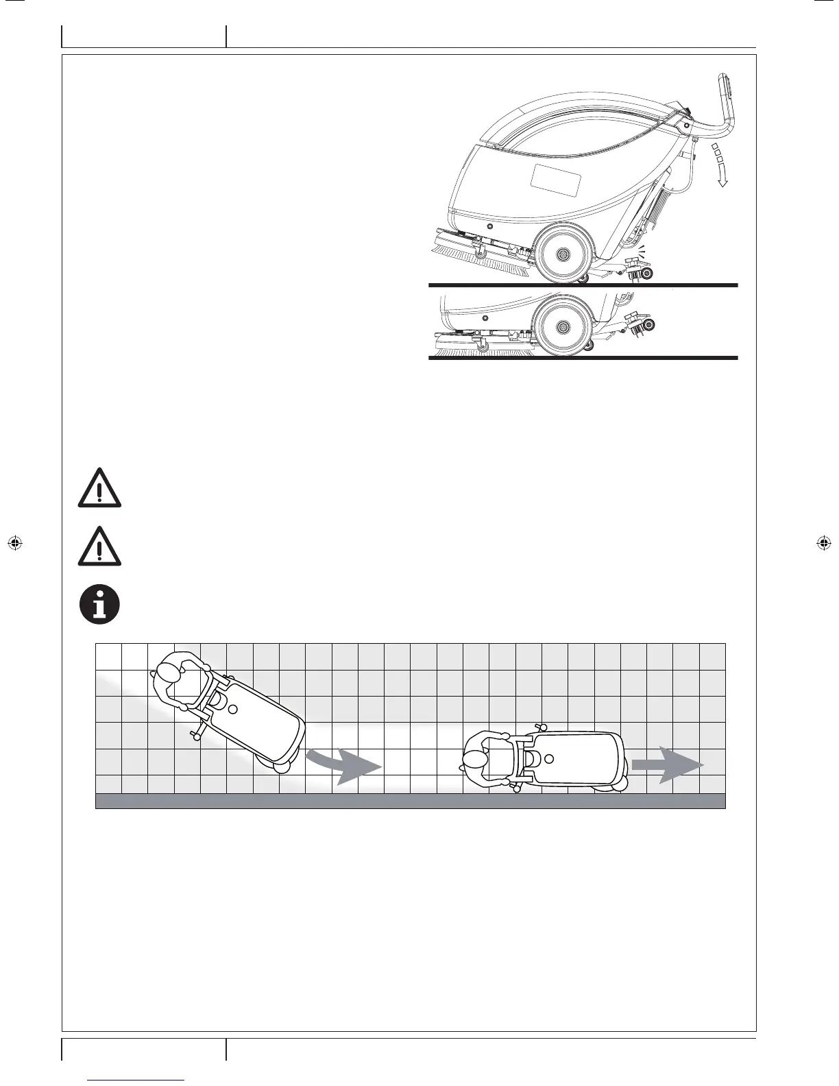 For correct scrubbing/drying of oors at the sides of the walls, Clarke suggests to go near the walls with the right side of