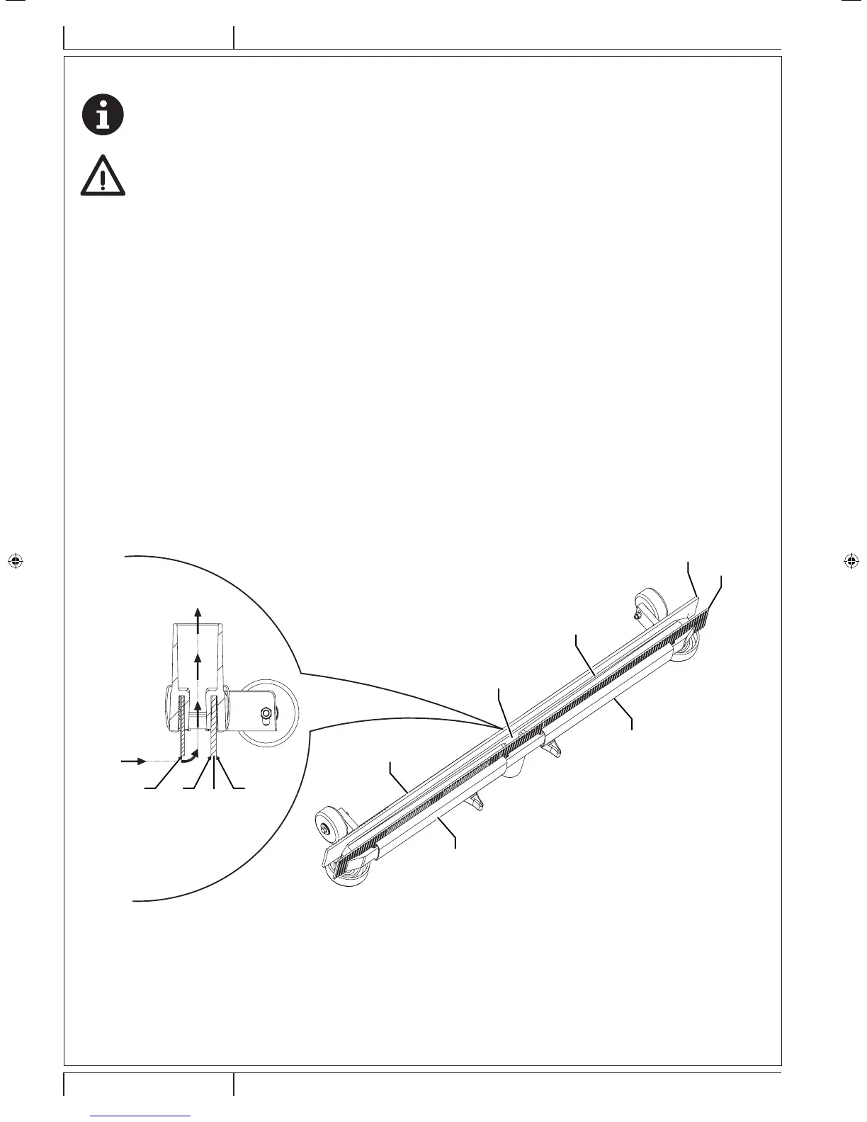 4. Install the squeegee (11) and screw tighten the handwheels (12).