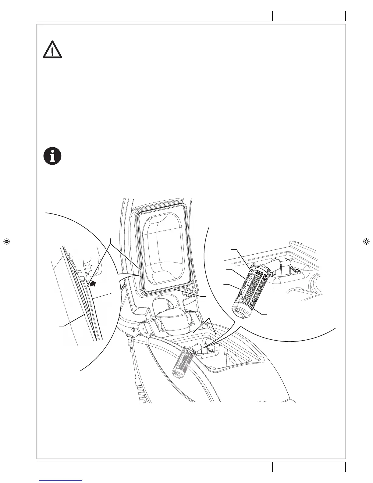 5. Contrôler l’intégrité du joint d’étanchéité (D) du couvercle du réservoir de l’eau de récupération.