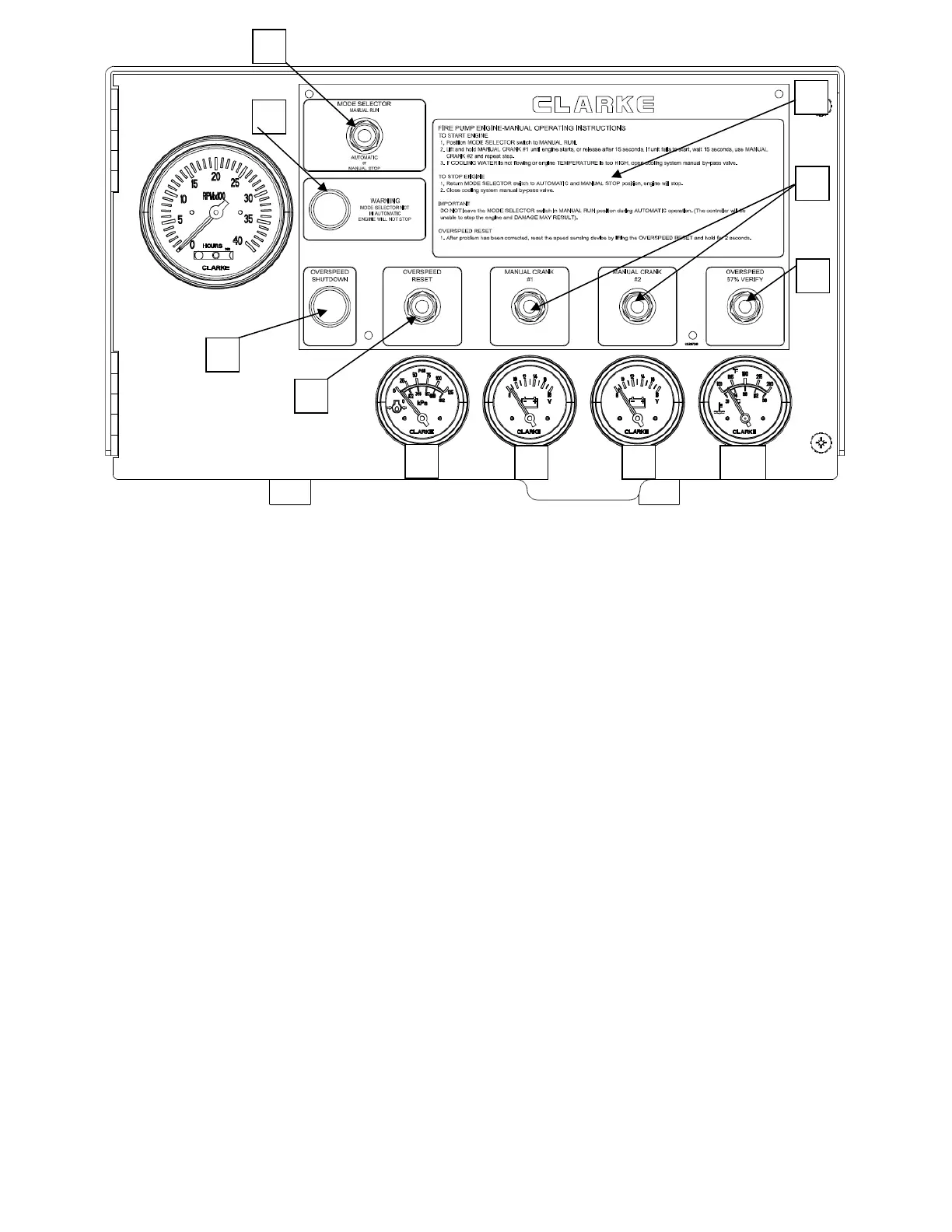 4 – Overspeed Reset 9 – Voltmeters Battery 1 & 2