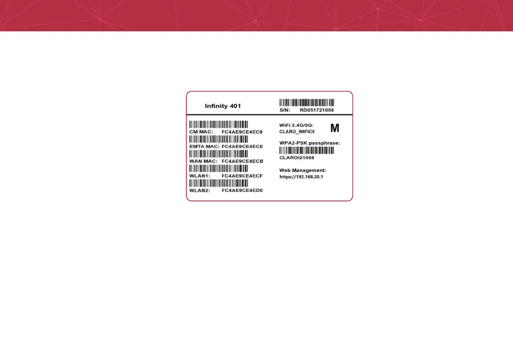 an example, each INFINITY 401 has their own label and setting value. Please follow your label information to access and configure INFINITY 401.