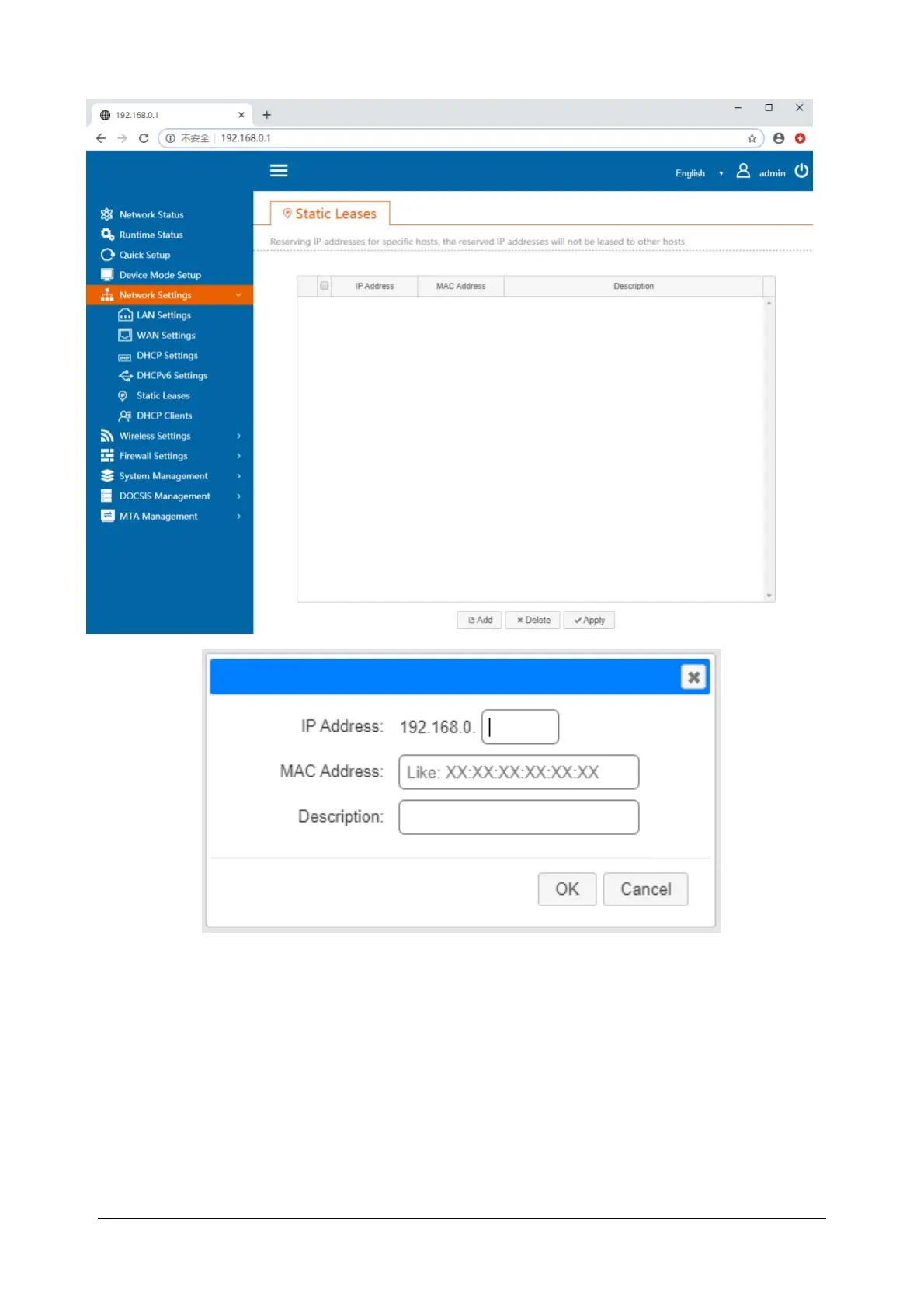 This page will display the following information for all hosts connected tothedevicethroughDHCP.