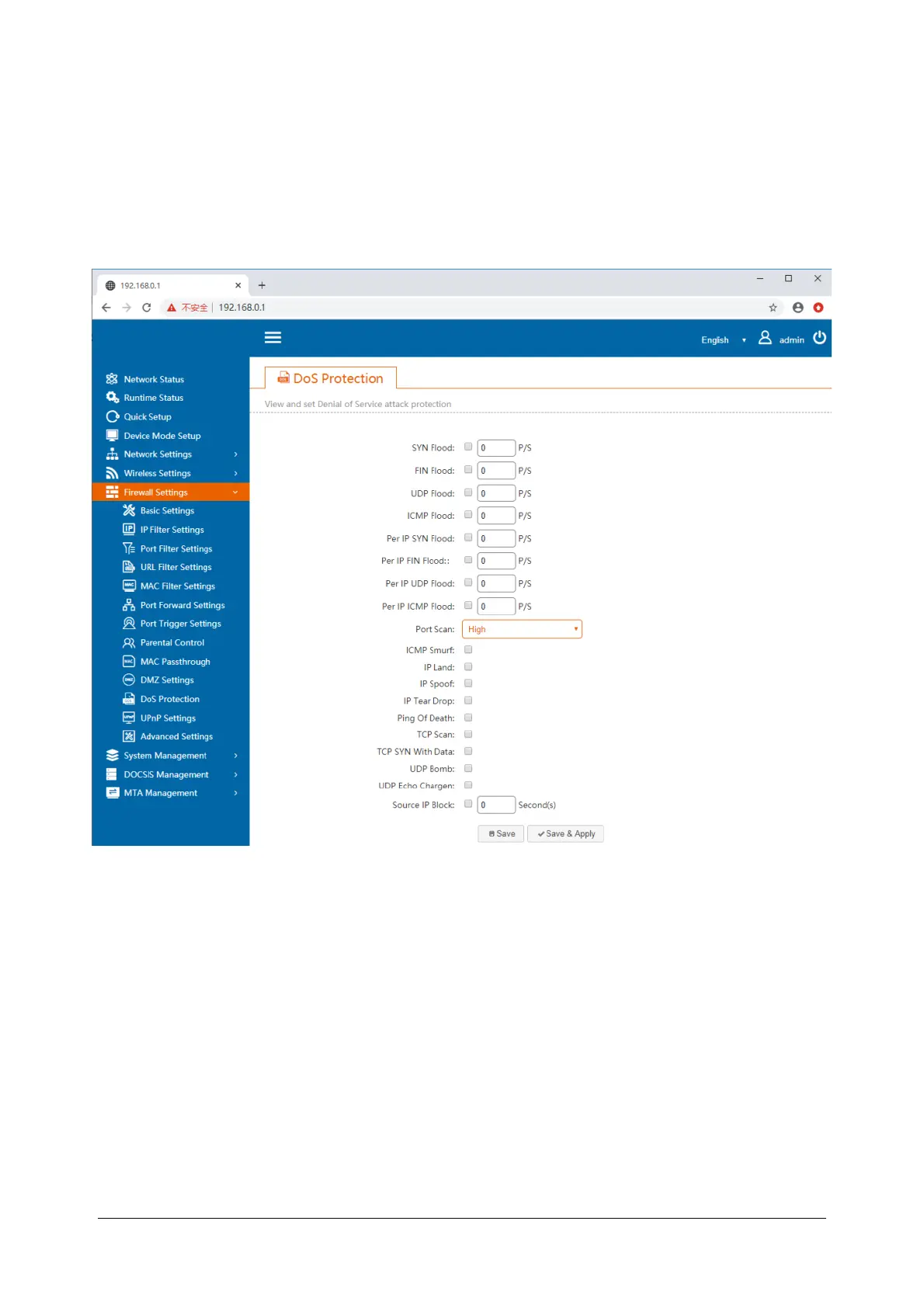 can check all types of attacks, click the Save button, and then click the Save & Apply button to take effect.