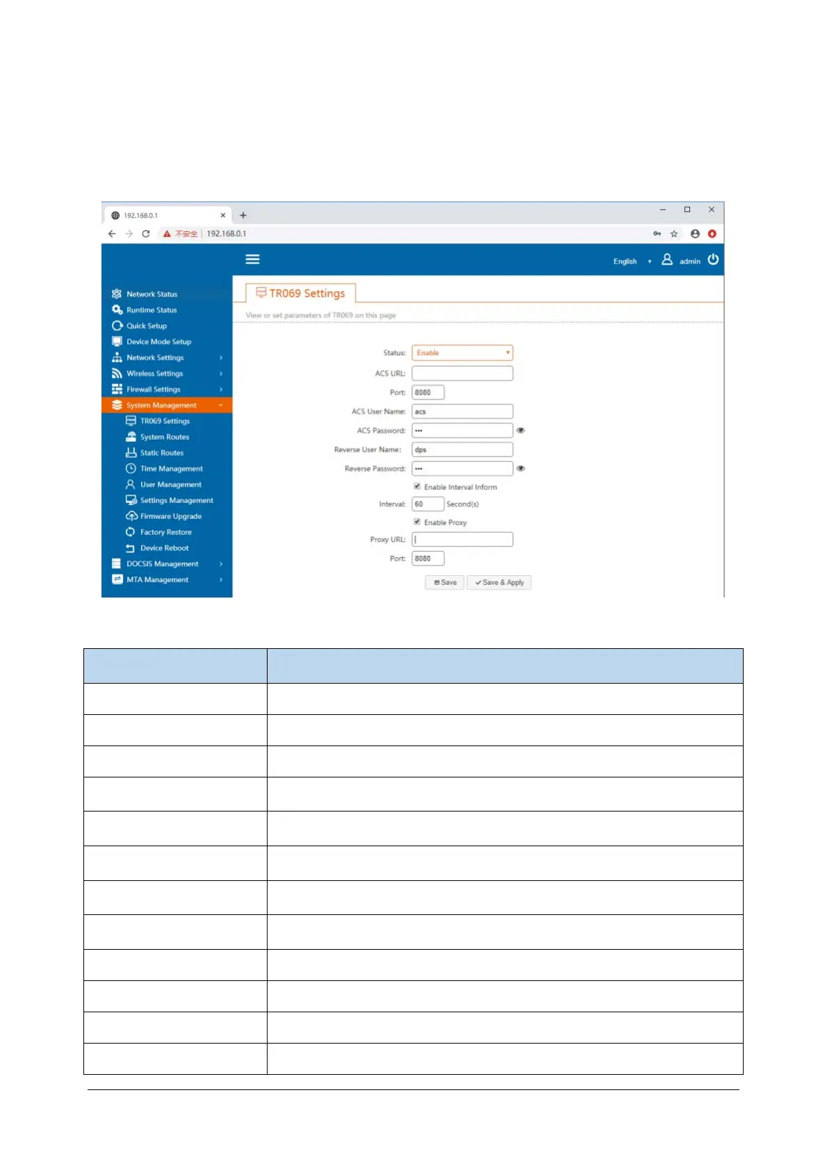 Enable Proxy Enable or disable TR069 proxy function