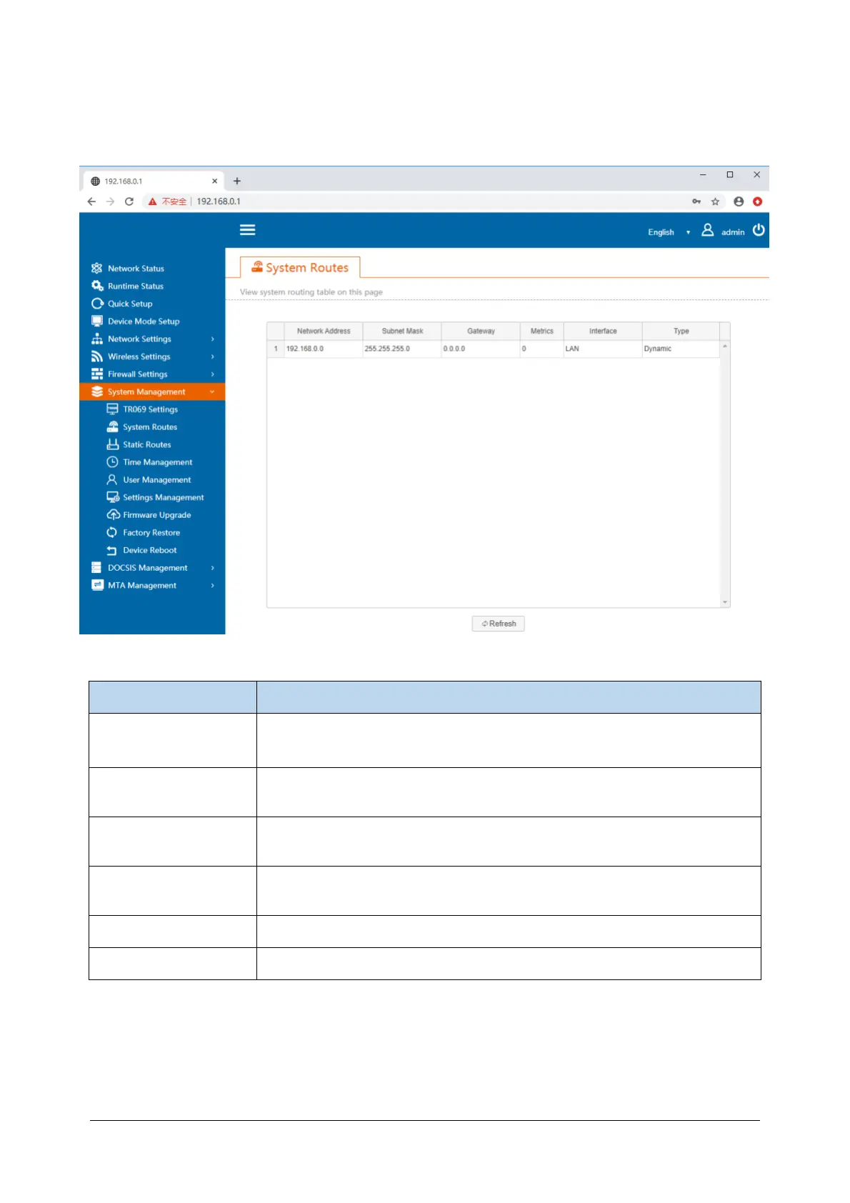 This page , you can view system routing table.