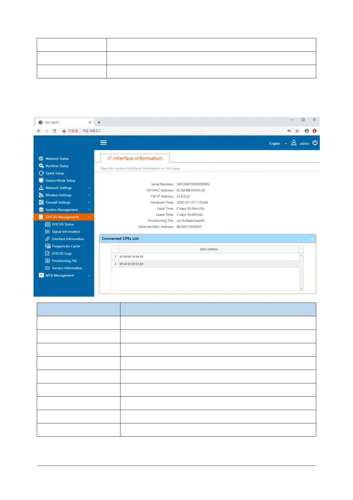 This page can view the CM's IP address, MAC address, configuration file, and other information.