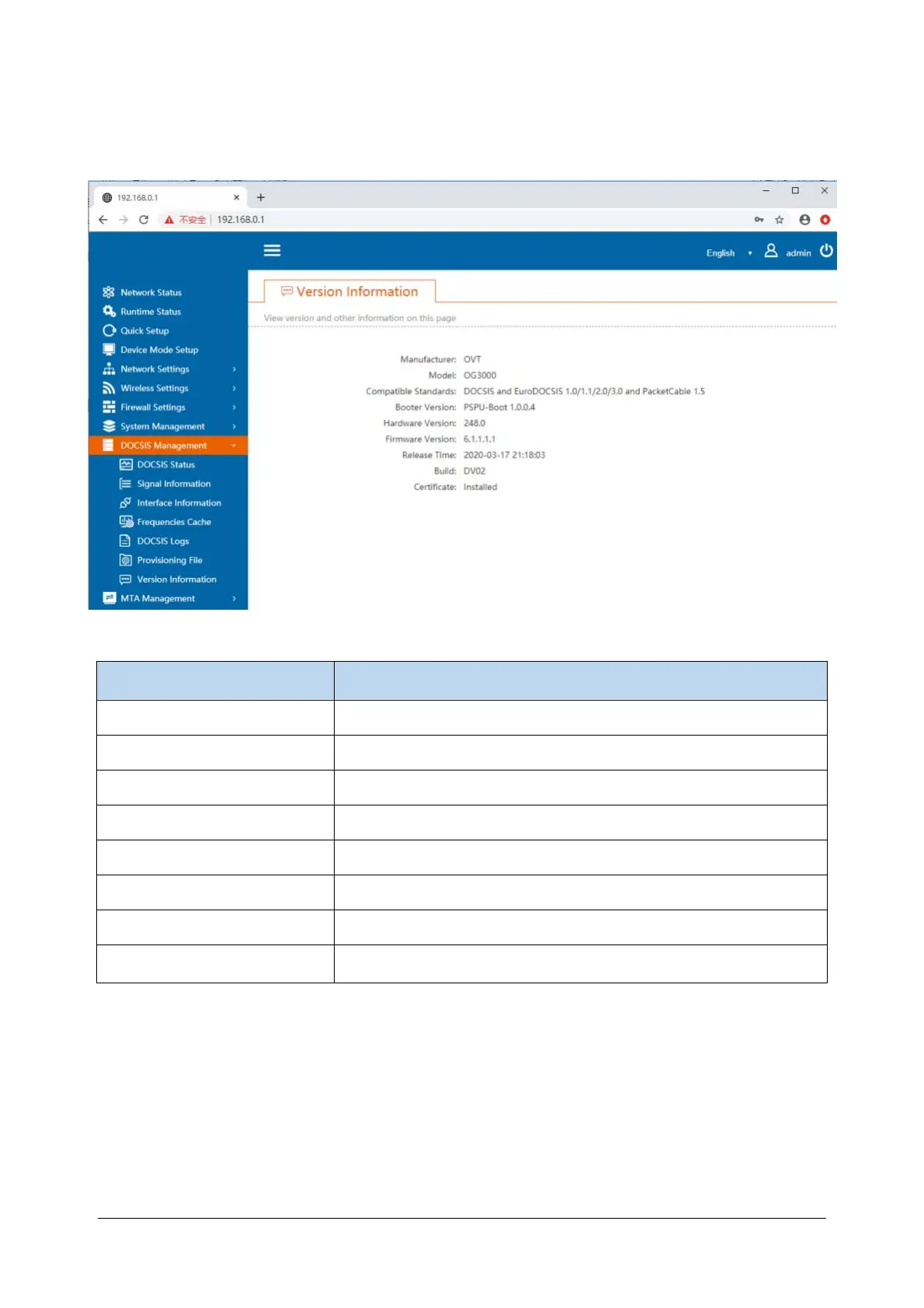 This page can view basic EMTA information, including information on software and hardware versions, etc.