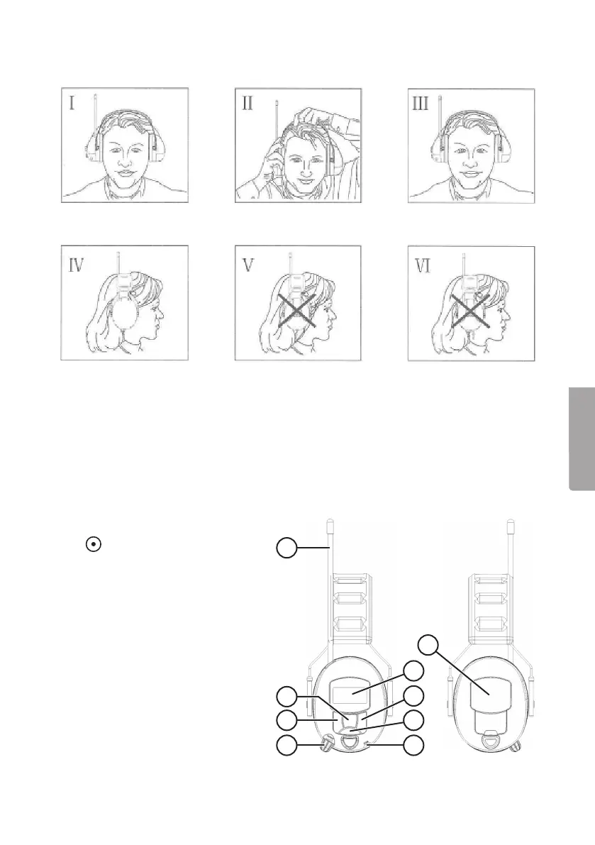 • Aseta korvakuvut korvien kohdalle.