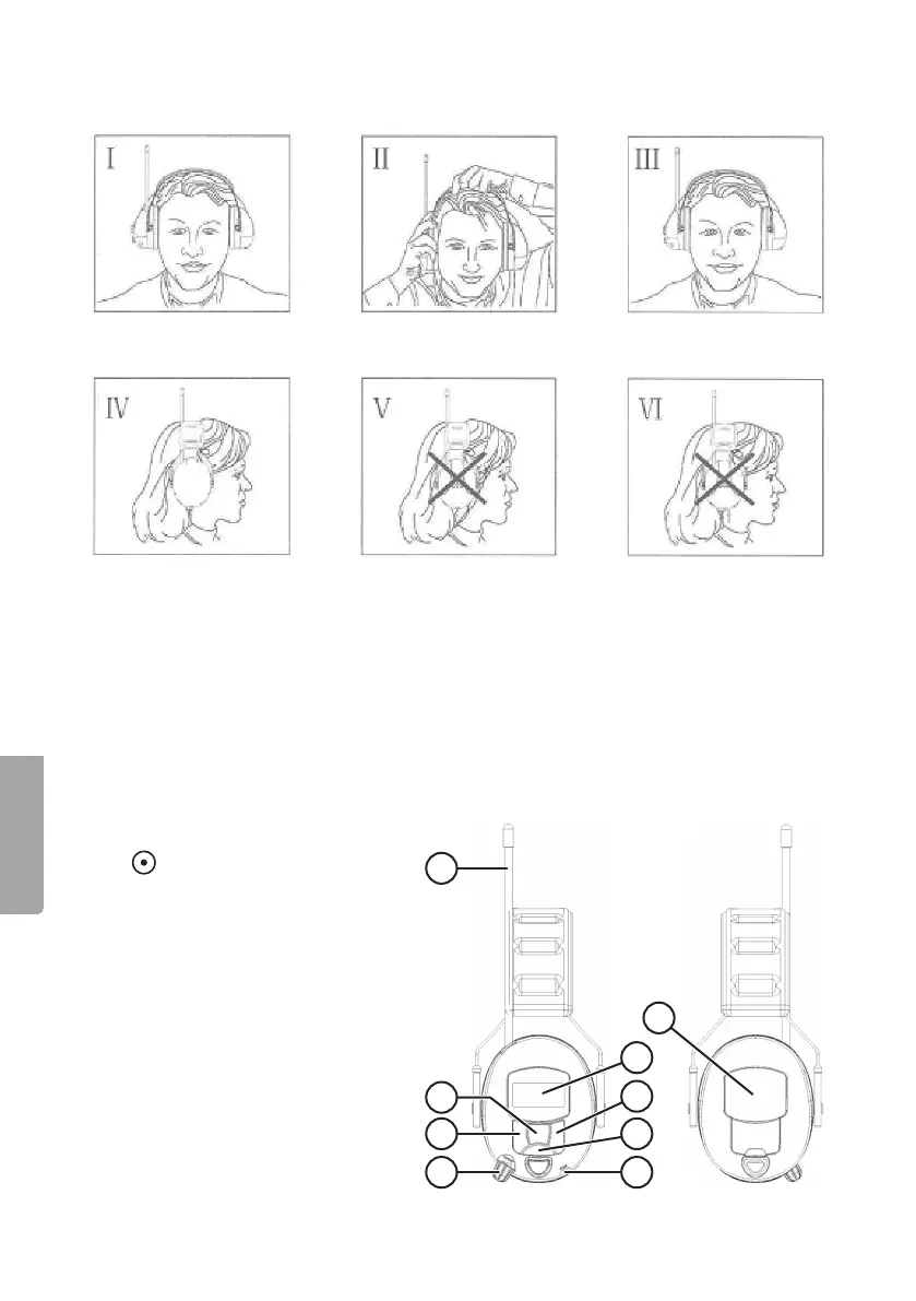 bevor der Gehörschutz aufgesetztwird. DerBügel muss am Kopf anliegen und