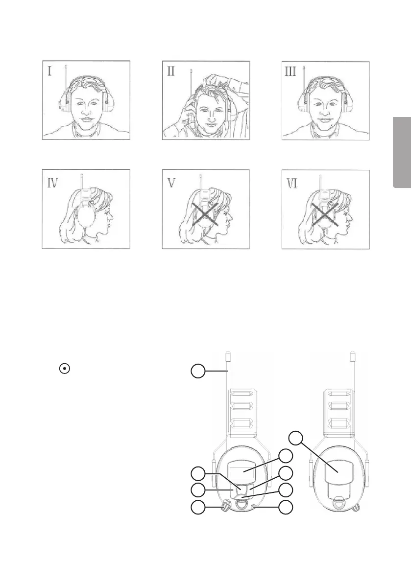 • Hörselskyddens funktion kan försämras av skalmarna om du bär glasögon.