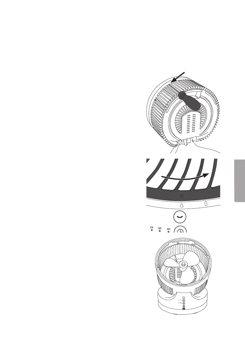 Tuulettimen siipien etupuolella olevan kuvun voi irrottaa puhdistusta varten: