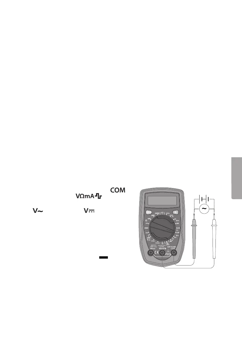 • Tarkista aina ennen jännitemittausta, että mittari on asettetu oikealle mittausalueelle
