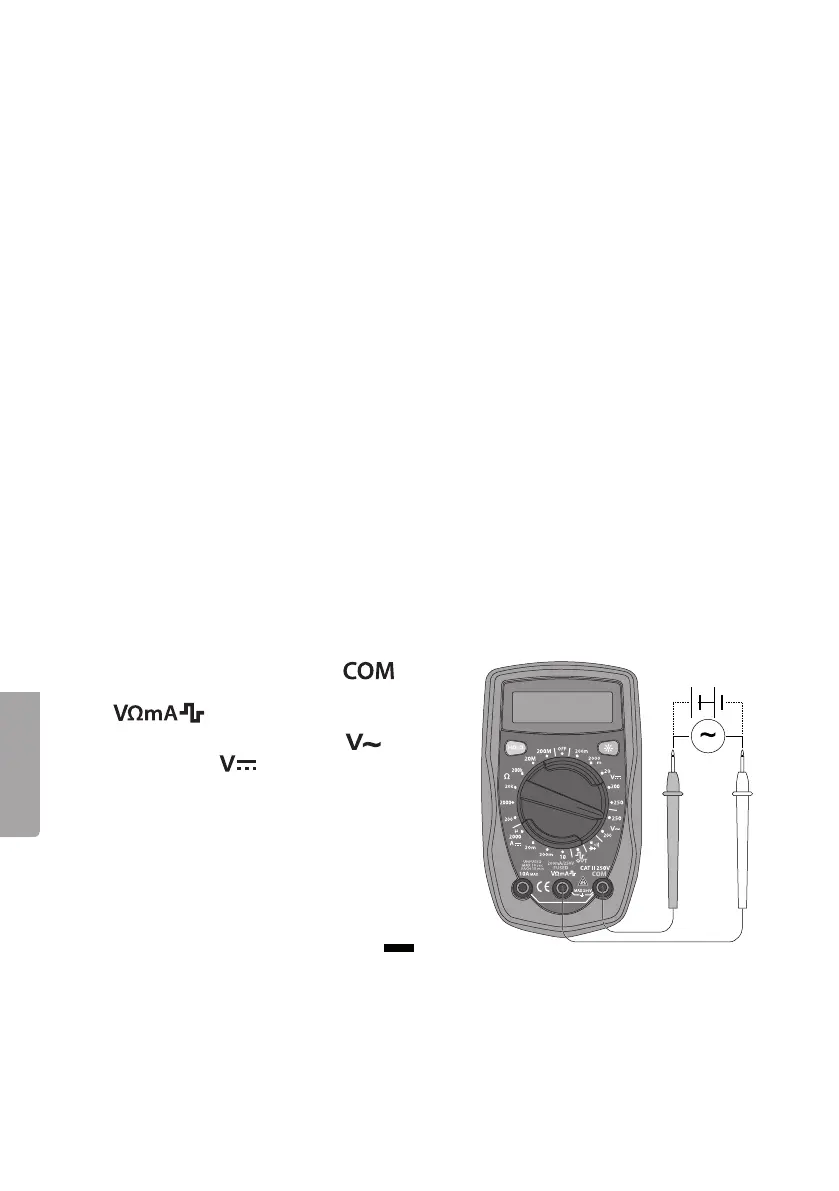 • Vor Spannungsmessung immer sicherstellen, dass dasMultimeter auf den