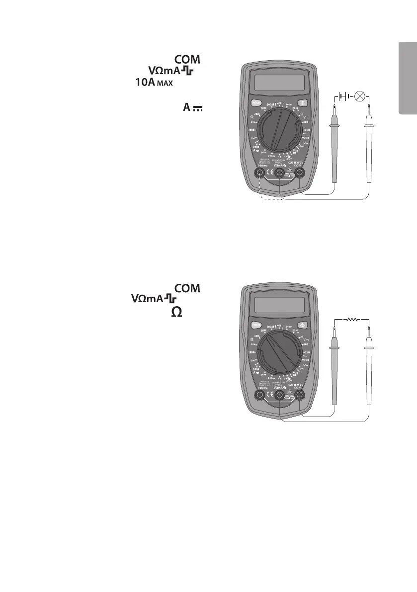 When measuring high currents, themeter should only be connected briefly (less than