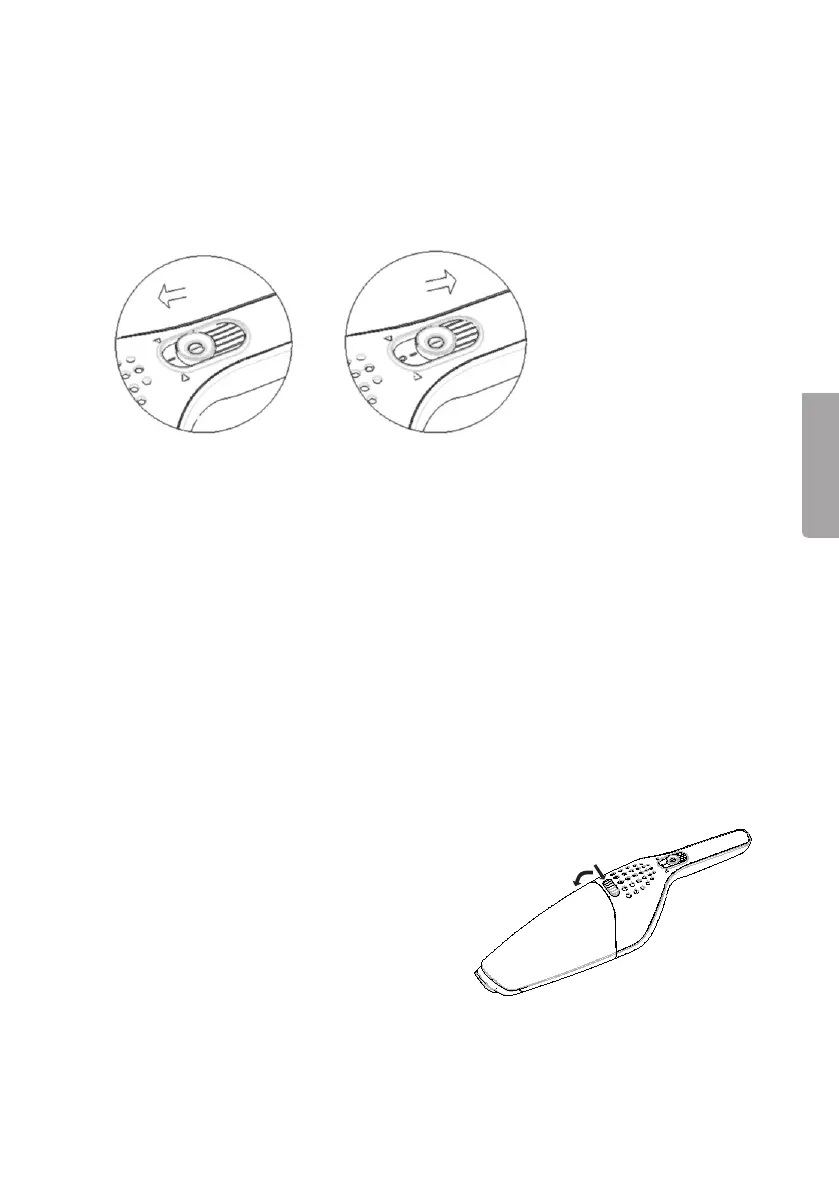 5. Trykk strømbryteren bakover for åskru av håndstøvsugeren.