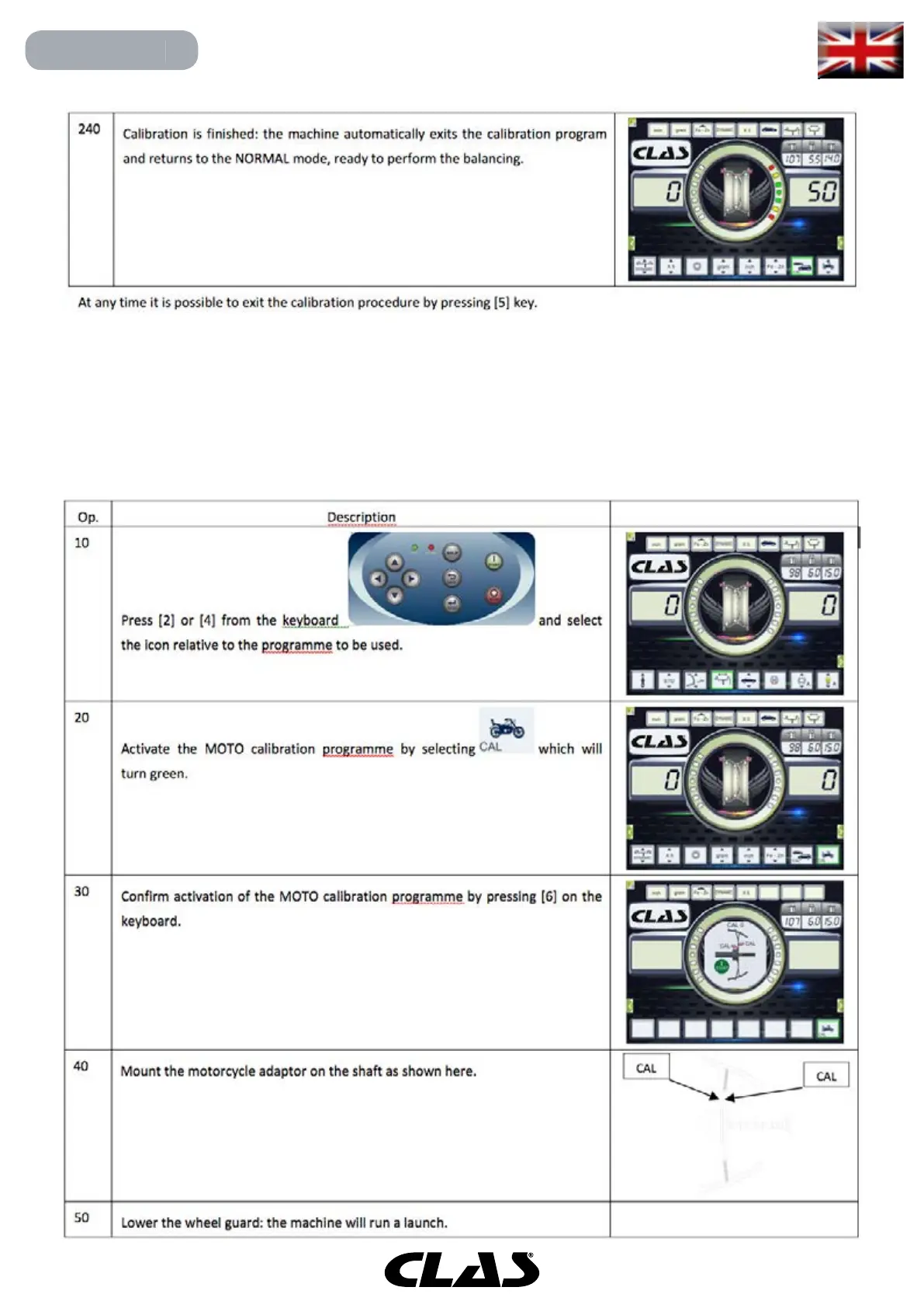 To perform the machine calibration with adaptor for motorcycle wheels, proceed as follows: