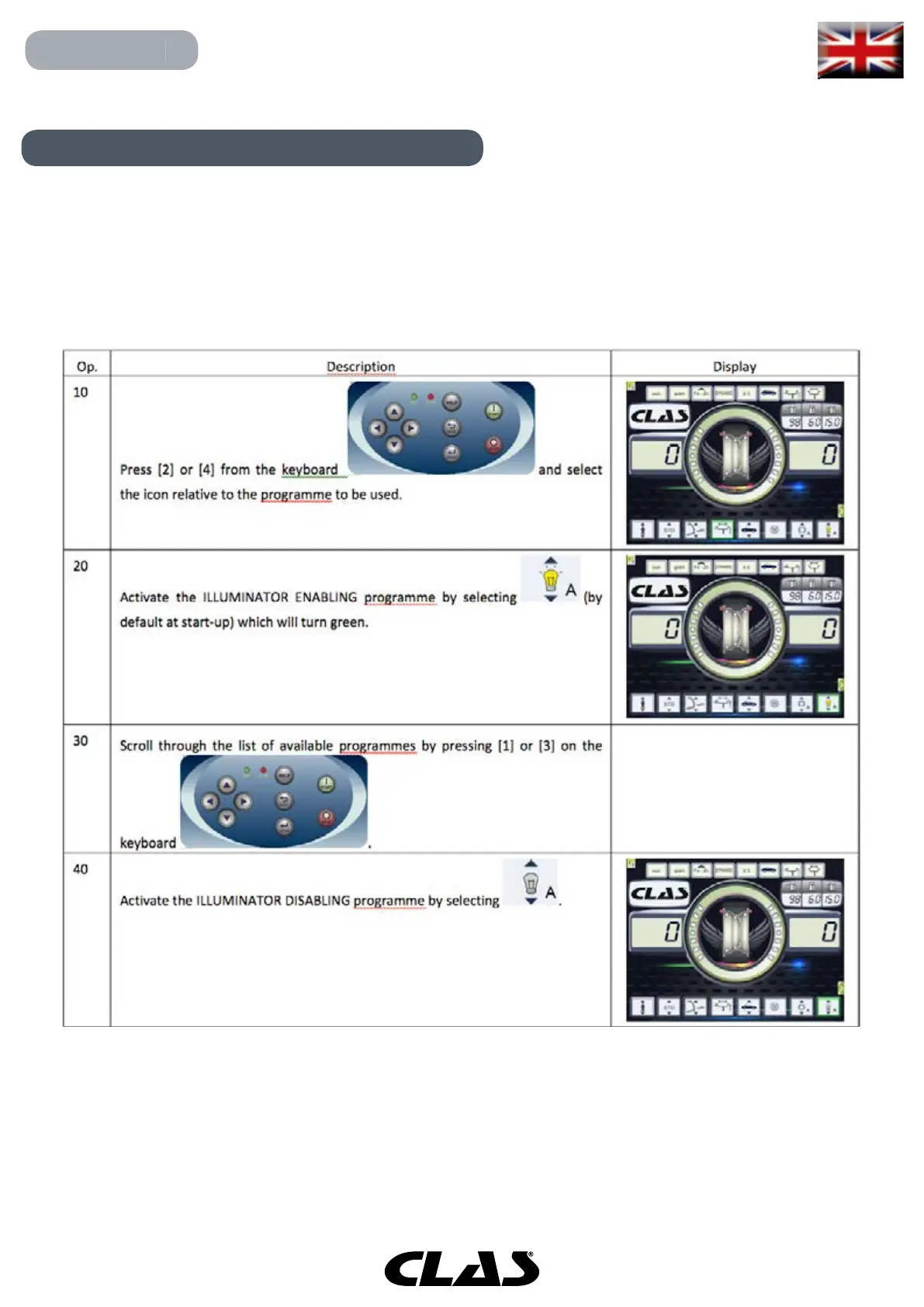 To activate and/or deactivate the ILLUMINATOR proceed as follows: