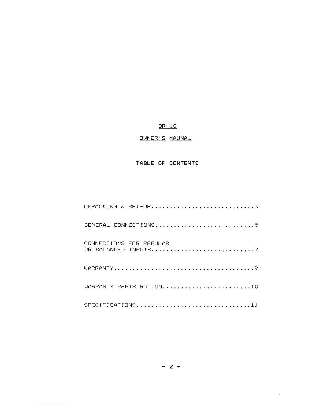 Classe Audio DR-10 - Table of Contents