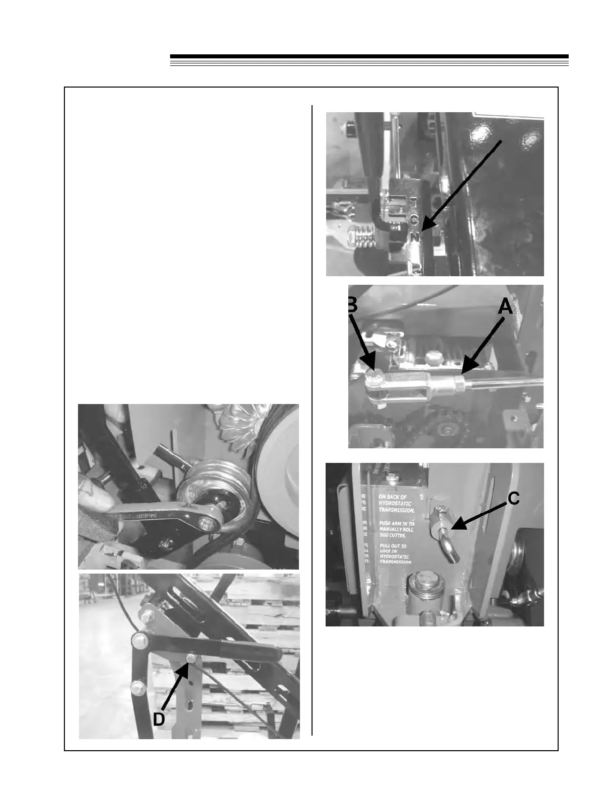 4. Loosen bolt D and move to where the lever