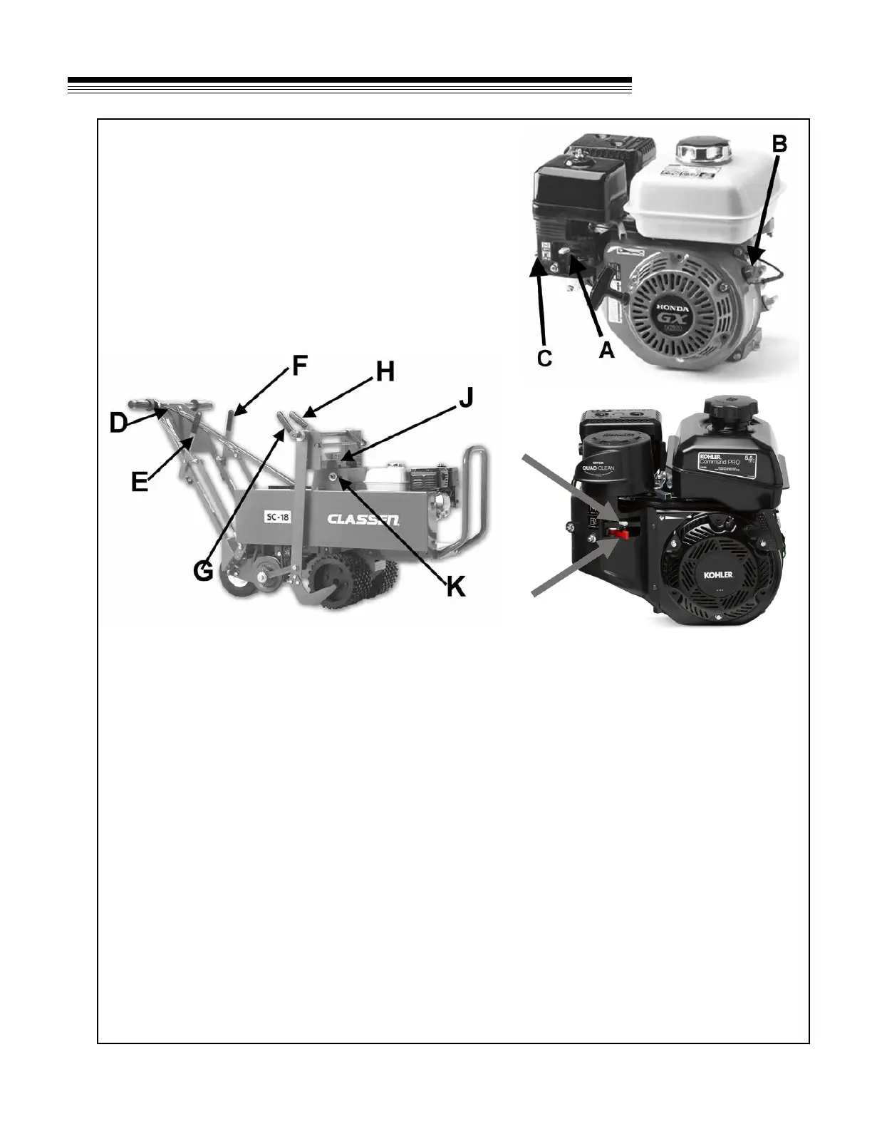 The Kohler engine switch is built into the Fuel Shut Off (A).