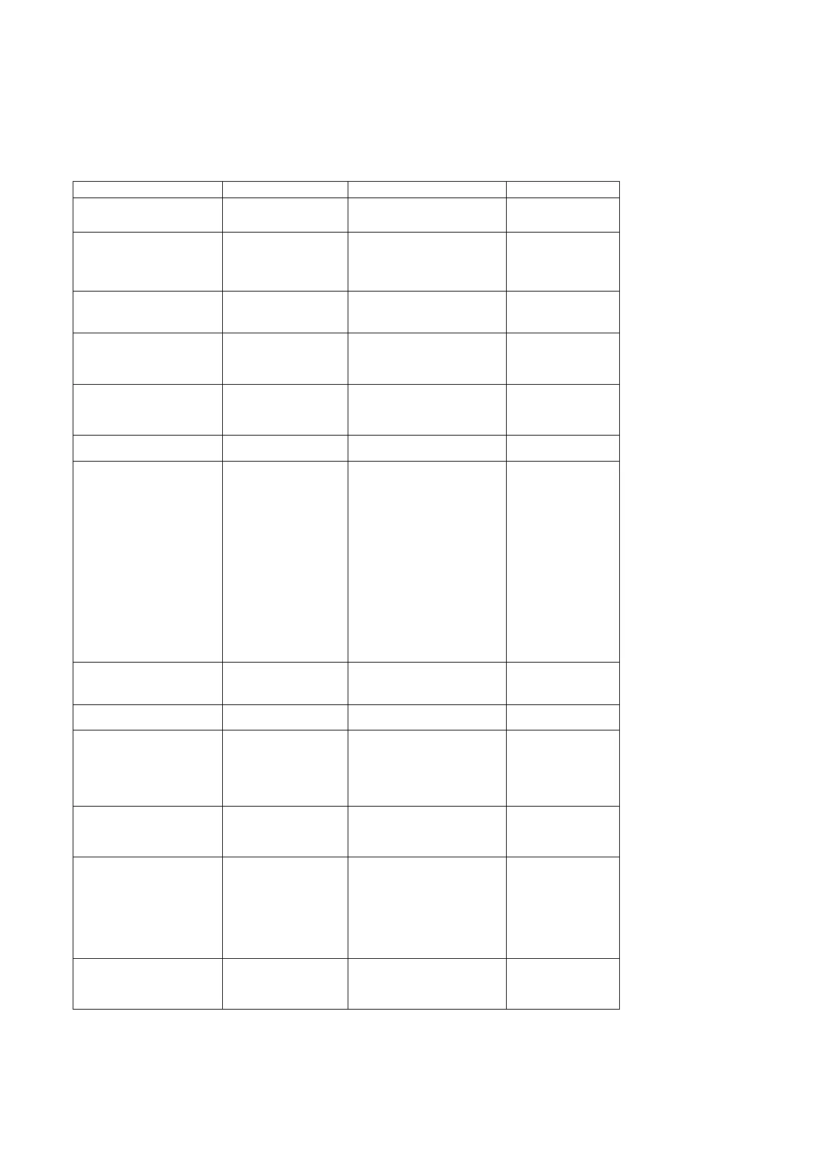 Table of MIDI implementation