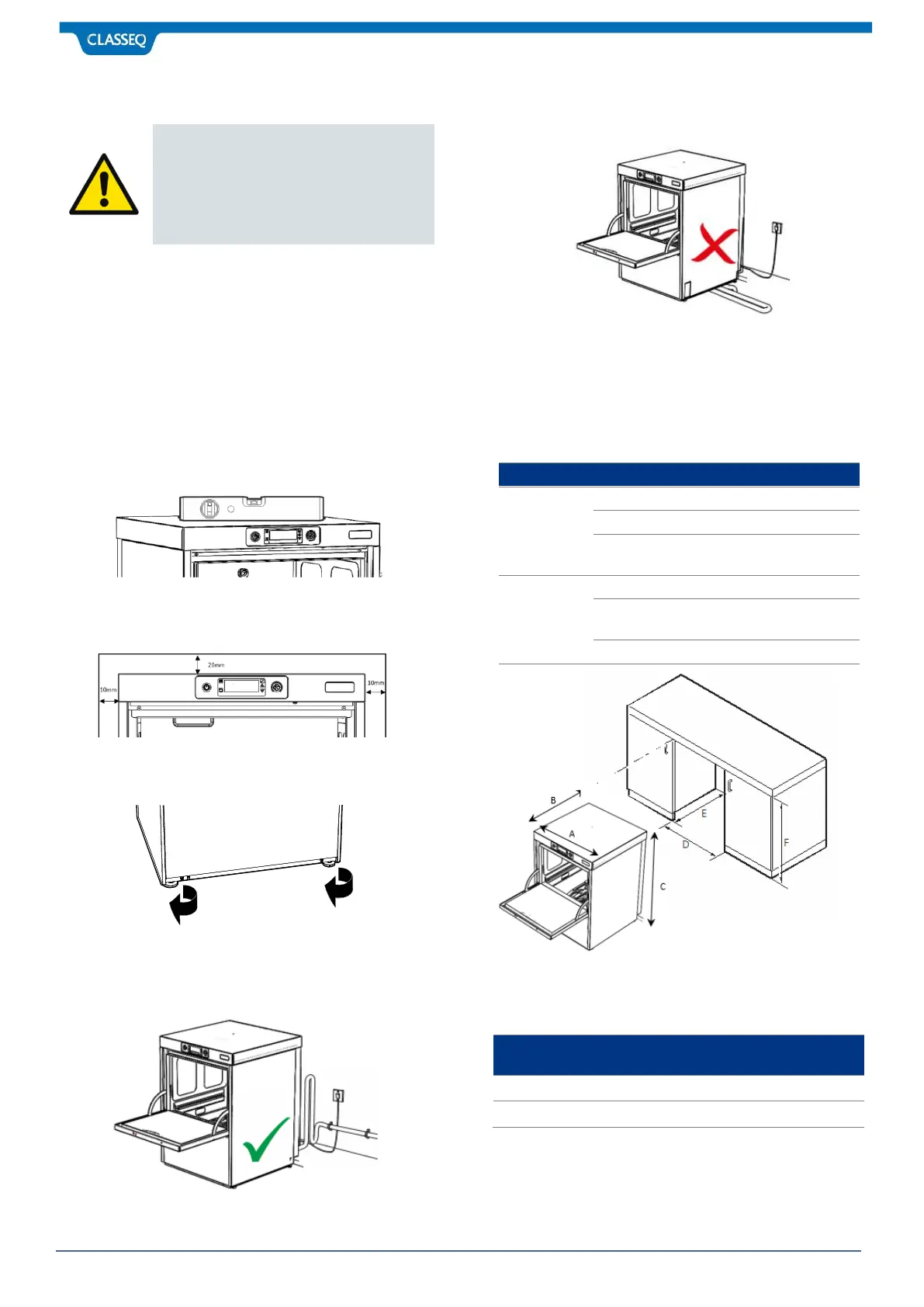 your warewasher and 20 mm clearance at the top of the
