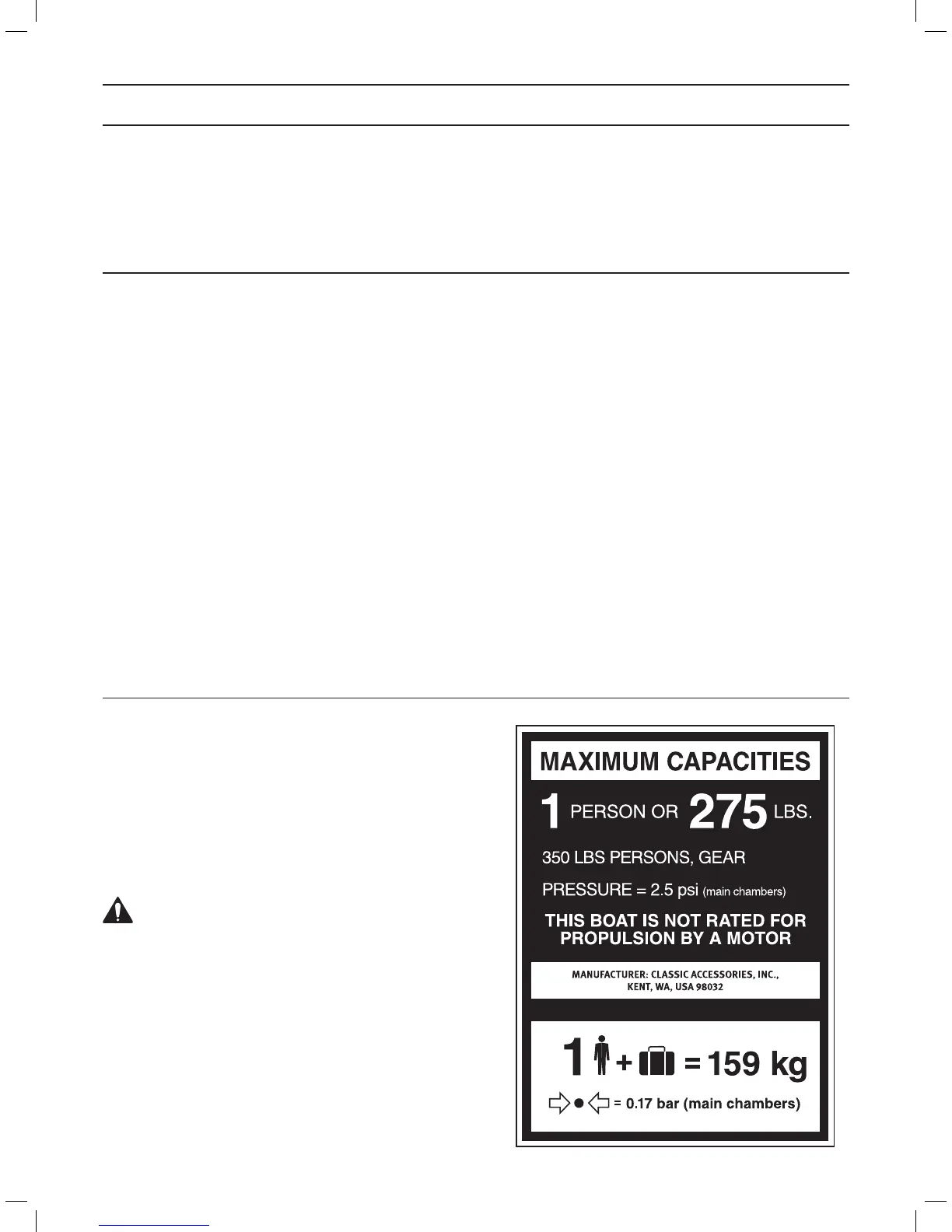 Maximum Persons & Gear Capacity: 350 lbs (159 kg)